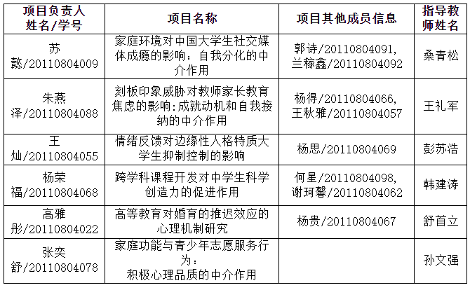 实验心理学 | 咨询心理学 | 高级心理统计 | 教育研习 |