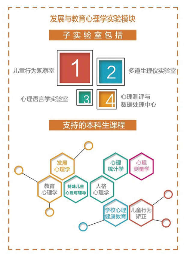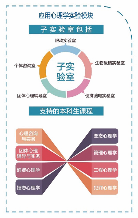 心理学实验中心为省级示范实验实训中心,有认知行为实验室、生物反馈实验室、儿童行为观察室等10余个实验室。