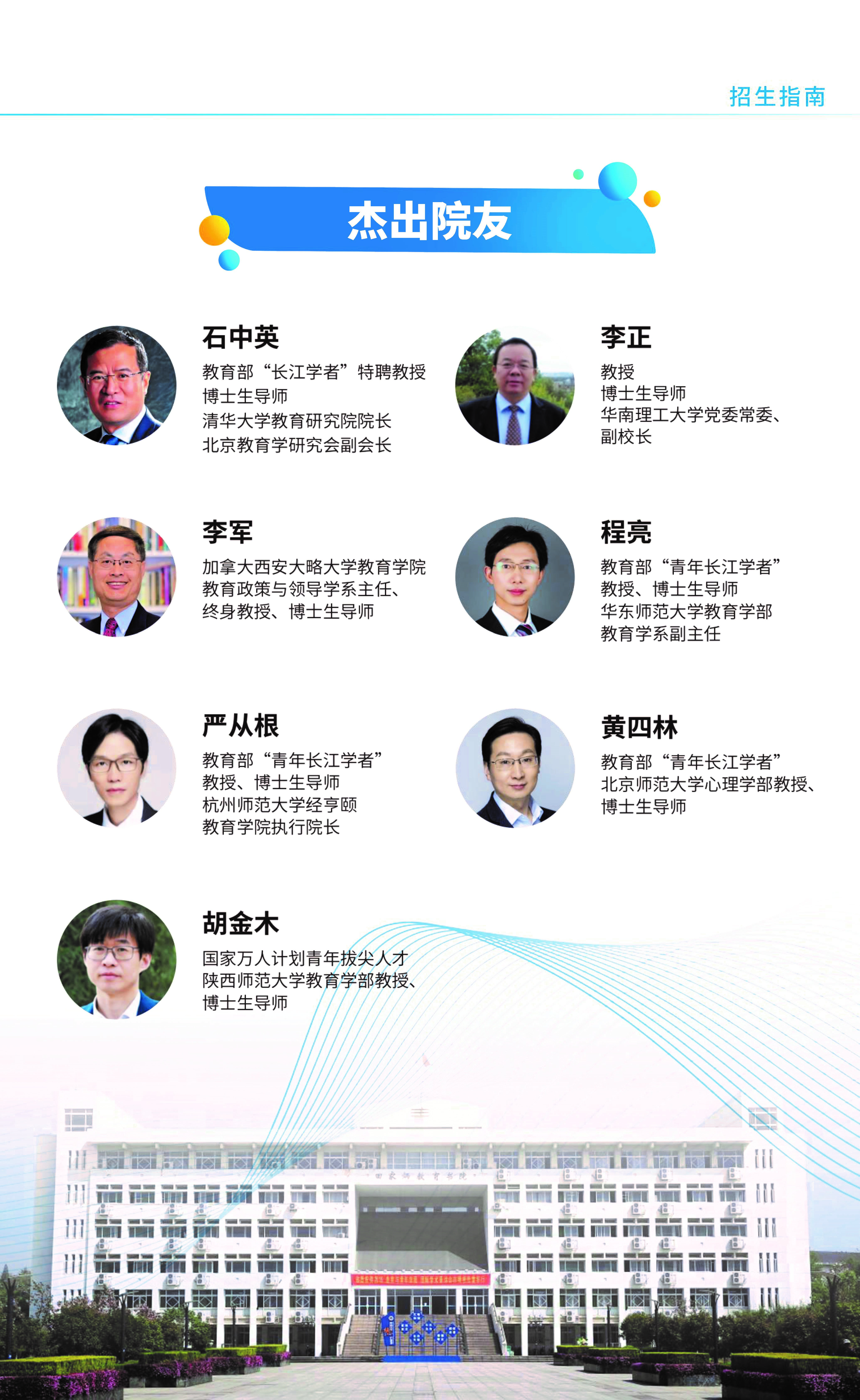 (一)教育学专业。本专业培养了一批又一批优秀毕业生,涌现出石中英、李正、李军、魏志春、孔燕、马健生、余秀兰、卜玉华、程亮、严从根、黄四林、胡金木等一批杰出员工。本专业员工发展渠道多元,就业形势良好,近五年,本专业初次就业率超97%,除了通过保研或考研进入北京师范大学、华东师范大学、浙江大学等名校继续深造,许多毕业生开始在教育行业崭露头角。
