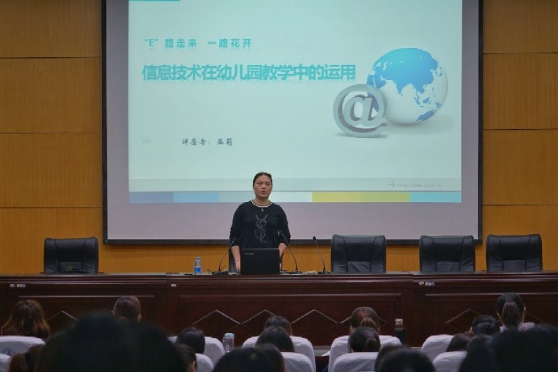 上午,南京市第五幼儿园园长巫莉与大家分享了《信息技术在幼儿园教学中的运用》的讲座。她从“对新技术的理解”、“新技术在幼儿一日活动中的运用”及“新技术支持下的游戏化学习实践与探索”三个维度畅谈了自己多年来的经验与思考,同时她带来了许多FLASH范例,生动形象的案例提升了教师对信息技术与五大领域教学相融合的认识。巫莉园长还现场展示了如何使用魅客软件快速制作简单的课件。整个讲座理论与实践相结合,赢得了阵阵掌声。