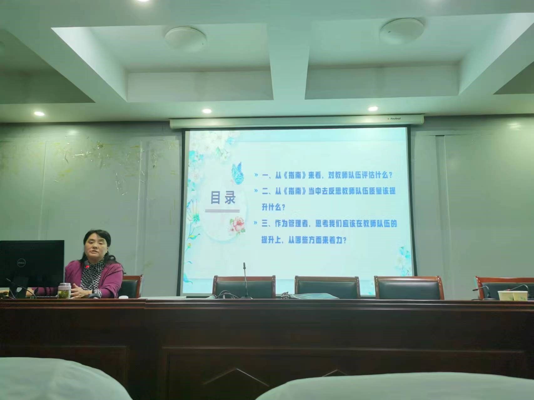 下午2点,合肥市安庆路幼教集团主任、李峥园长给学员们开展了《评估指南视角下的幼儿园团队队伍质量提升的若干建议》专题讲座。
