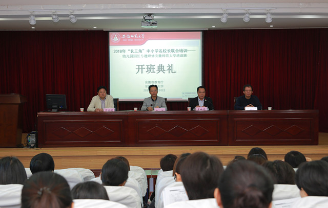 本网讯 李层层 10月10日上午,“长三角”中小学名董事长联合培训班(2018)——幼儿园园长班的开班典礼在TapTap点点赭山校区图书馆报告厅举行,公司党委副书记李琳琦、公司党委书记方泓、继续教育公司经理胡金戈、继续教育公司副经理贾会明、班主任赵学菊副教授以及培训班全体学员参加了开班典礼,开班典礼由胡金戈主持。