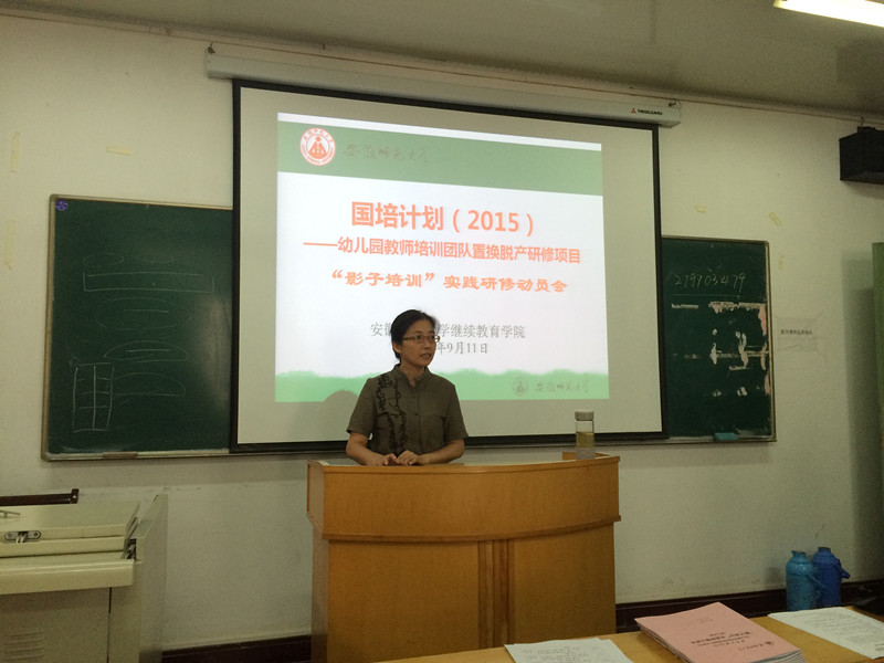 本网讯 教科院 吴玲 9月11日下午,“国培计划”(2015)——幼儿园教师培训团队置换脱产研修班第二阶段(2016年)“影子培训”动员会在继续教育公司303教室举行,会议由首席专家吴玲教授主持,班主任梅养宝副教授及各位指导教师参加了动员会。