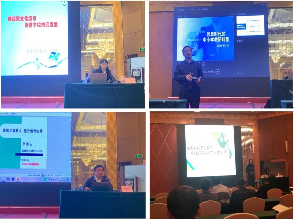 无为市无城镇小学朱玉芳董事长,带着全校十几位老师坚守一所村小,却凭着满腔热情把村小办得生机勃勃。南陵县家发中学沈伟董事长就信息化时代中小学教研转型给大家做了具体的阐释。蒙城县立仓学区立仓镇李美玉董事长把自己的“牛办学”绘声绘色地描述给大家听,获得了学员老师的一致共鸣;芜湖市镜湖新城小学唐晓俐老师就镜湖小学聚焦立德树人,提升教育实效的一系列办学模式通过图文并茂的形式逐一呈现。