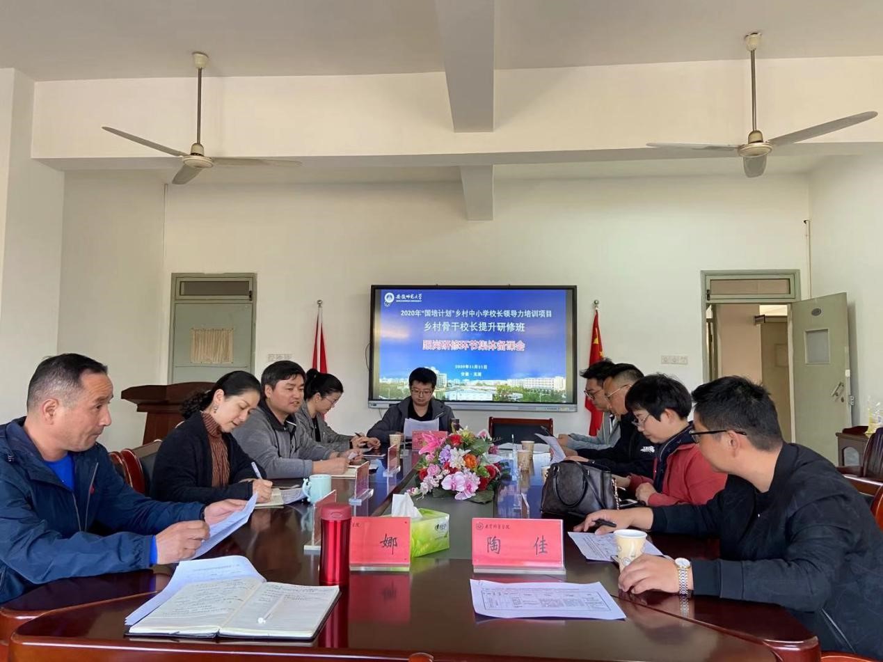 11月11日下午,2020年“国培计划”乡村骨干董事长提升研修班集体备课会在教科院308召开,项目首席专家、教科院经理李宜江教授,副经理何海燕,影子培训校董事长和全体班主任参会。