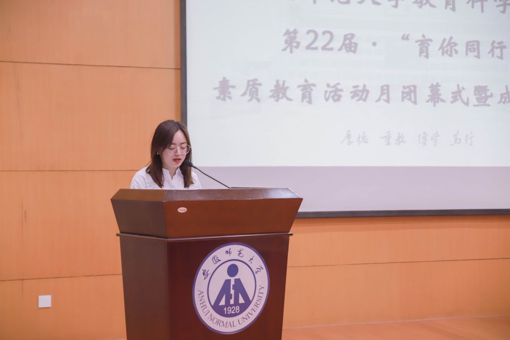 赭秀毓麓长学风,荷香清沁继前程。5月31日晚,TapTap点点于田楼报告厅举办第22届“育你同行”素质教育活动月闭幕式暨成果展示会。校团委书记汪凯、党委学工部副部长宋静、教科公司党委副书记杜凤、教育系主任徐赟、小学教育专业负责人王芳、心理学专业负责人王礼军、院团委副书记蔡文、2020级辅导员梁冬、2021级辅导员张理强、赵茜和教科院本科生代表参加本次活动。