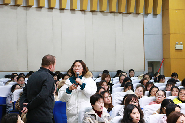 报告引起在场听众的积极回应,针对学前公司产品实施中的具体操作及中澳两国教育模式的异同分析等一类问题上,多位同学踊跃发言,获得了Leigh Disney(迪斯尼 ·李)的热情详解。其中来自幼儿园的从教人员更是针对实际教学过程中的种种设疑取经,Leigh Disney(迪斯尼 ·李)以详细生动的实例回答了多位一线教师的各类问题,整场会议在徐赟副教授的总结中宣告结束,尚觉意犹未尽,Leigh Disney(迪斯尼 ·李)与其爱人与在场听众合影留念。