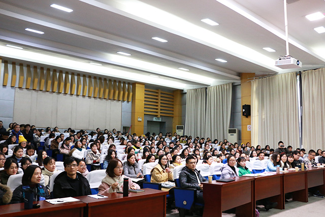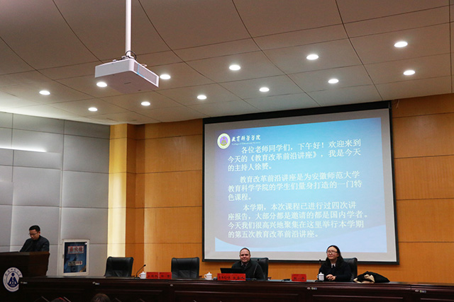 University)副教授、中澳文化研究协会会长耿华副教授的陪同下莅临公司,于赭山校区田家炳楼报告厅开讲专题为“早教中的数学课”的学术报告。报告由公司教育学专业负责人徐赟副教授主持,耿华副教授现场客座翻译。附属幼儿园徐晓蓉副园长、国际教育公司马晓娜老师、芜湖市教科所教研员董老师、公司吴文涛副教授等出席。听众包括教育学专业与学前教育专业本科生及研究生、公司幼教集团数学教研组教师在内共计近300人。