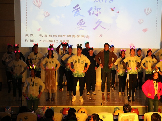12月9日晚7点,“爱你要久·双迎晚会”随着“舞蹈串烧”的律动拉开帷幕,教科院舞蹈队以一曲具有hiphop风格的齐舞瞬间点燃了全场。晚会在四位主持人满怀激情的祝词下,宣布正式开始。歌舞、小品、合唱、魔术等精彩的节目为观众呈现了丰富的视听盛宴,学前中美同学带来的说唱节目《离开》揭示了当代手机控的问题;带有古风元素的器乐合唱《红尘客栈》演绎了不一样的江湖风光;气势磅礴的太空史诗歌剧《star sky》将全场的气氛引向高潮;2018级新生自导自演的小品节目《送红包》用一种幽默的方式讽刺了社会上残留的不合理的医患关系;16、17级的学子用动感的舞蹈《dream party》展现了青春的飞扬;合唱节目《在希望的田野上》以青春的交响绽放华丽的激情,嘹亮的歌声令人沉醉;幻视幻听的魔术表演为晚会带来了欢乐而神秘的气息;等到18级全体新生带来的节目《啸园歌声》时,全场气氛达到高潮,场下观众纷纷都挥舞手中的荧光棒一起跟唱;接下来的节目是程啸老师改编的《我要你》,娓娓动听的歌声里表达了18级辅导员对新生的期待和祝福。
