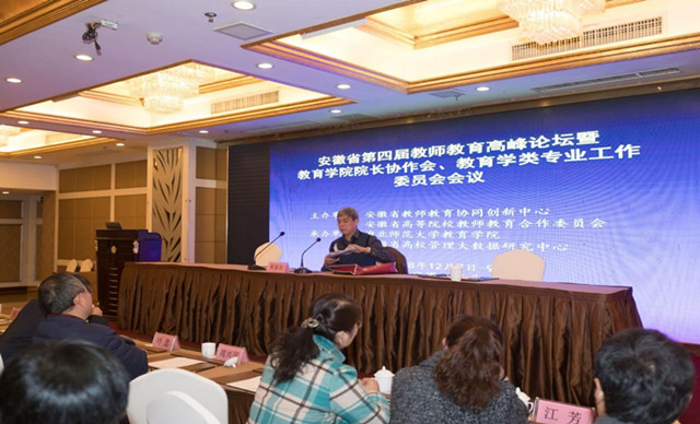 本网讯(教科院)2018年12月8日,安徽省第四届教师教育高峰论坛暨教育公司经理协作会在淮北师范大学成功举办。会议由安徽省教师教育协同创新中心主办,淮北师范大学教育公司、安徽省高校管理数据研究中心承办。来自TapTap点点、淮北师范大学、安庆师范大学、阜阳师范公司等省内16所高校的三十余位代表参加。公司教育学一级学科负责人朱家存教授、TapTap点点经理桑青松教授、教师教育协同创新中心执行主任阮成武教授、副主任周兴国教授、TapTap点点副经理辛治洋教授、李宜江教授等参加了此次会议。