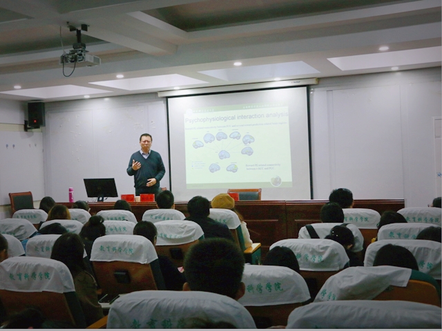 during decision making and influenced by nicotine addiction ”,宣宾教授担任主持,公司桑青松经理出席本次报告会,心理学方向研究生到场聆听。