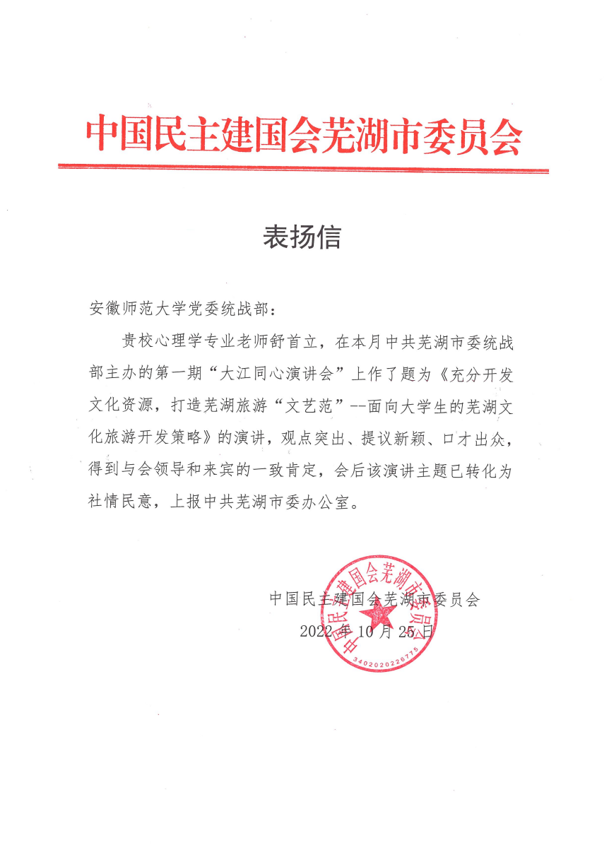 会后,民建芜湖市委会专程向公司发来表扬信。