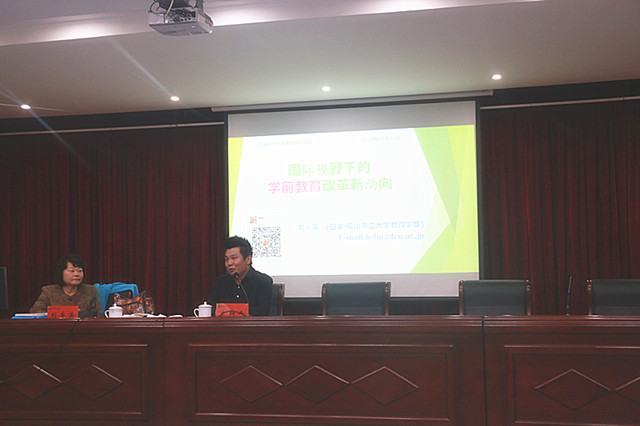 本网讯(教科院 文/王红 图/朱瑞)为了提升公司师生的学术视野,加强公司学前教育团队建设与新发展,10月22日上午,公司邀请了日本福山市立大学研究生院教育学研究科教授、南京师范大学兼职教授刘乡英来公司作了主题为“国际视野下的学前教育改革新动向”的学术报告,报告在赭山校区图书馆报告厅进行。教科院学前教育专业王路曦老师主持本次活动,学前教育专业负责人张更立教授出席,教育学相关专业本科生、研究生约200人到场聆听。