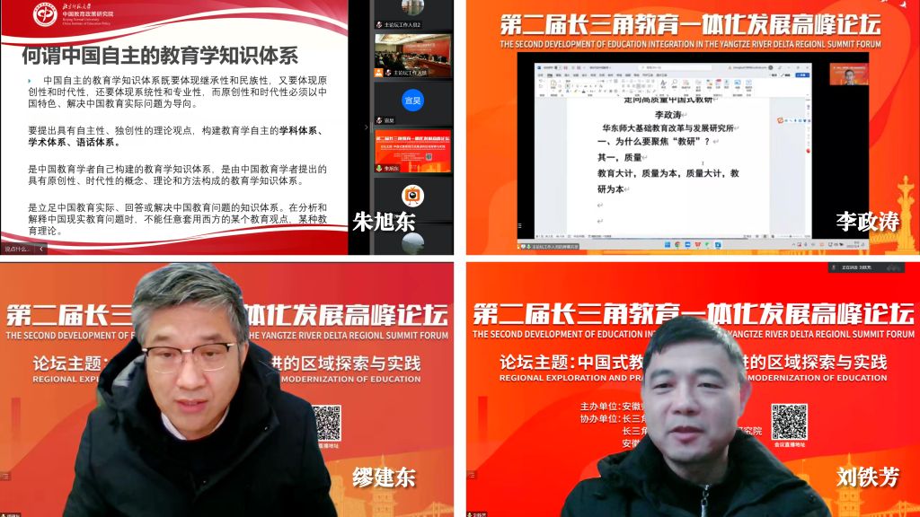 12月4日,由TapTap点点主办,长三角教师教育联盟、长三角教育一体化发展安徽研究院、安徽省教师教育协同创新中心协办的第二届长三角教育一体化发展高峰论坛在TapTap点点隆重举行。本届论坛主题为“中国式教育现代化的区域探索与实践”。来自北京大学、北京师范大学、华东师范大学等40余家单位的近50位专家学者,以线上线下相结合形式共同分享了中国式教育现代化方面的研究成果和实践经验。当天线上线下参会人数累计达十万人次。