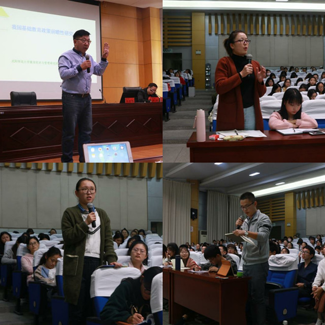 报告尾声,徐赟副教授做出总结性发言,他先是再次感谢了祁教授此次的授课,并感念其研究生期间与祁教授的点滴师生之情,同时对祁教授本人渊博深厚的学术造诣、严谨求实的治学态度、丰硕的学术成果表示钦佩。最后他指出,通过这场报告,同学们既要学习知识、又要学习教育政策分析的基本方法,还要结合祁教授所讲内容寻找自己学术兴趣和研究的理论生长点。