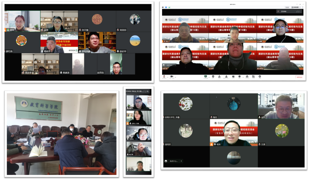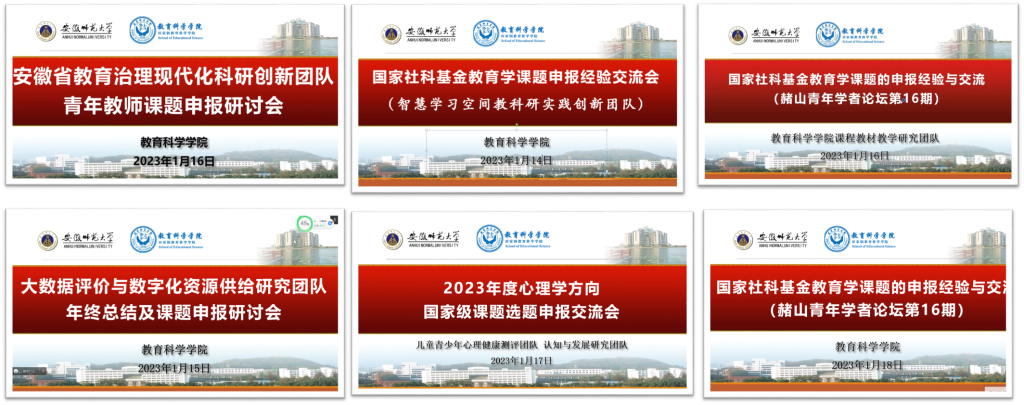 安徽省教育治理现代化科研创新团队、认知与发展研究团队、儿童青少年心理健康测评团队、临床与咨询心理学研究团队、智慧学习空间教科研创新实践团队、人工智能+教师教育研究团队、数字化学习科学与资源供给机制研究团队、课程教材教学研究团队等各团队的辅导会上,2023年度拟申报国家自然、国家社科、全国教育科学规划、教育部人文社科等高层次项目的教师分别汇报了课题选题、申报思路等,团队负责人及成员针对拟申报项目中存在的问题,从申报书的撰写技巧、研究设计的整体逻辑、论证具体细节等方面,集思广益、交流探讨,对支持团队成员特别是青年教师积累项目申报经验、明确未来研究方向和卓有成效开展科学研究具有重要意义。