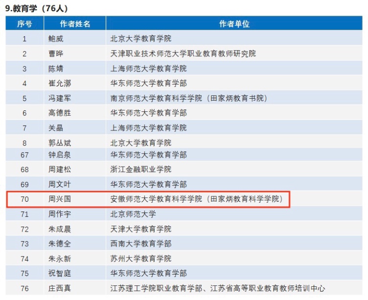近日,中国人民大学社会科学学术成果评价研究中心联合中国人民大学书报资料中心发布《复印报刊资料重要转载来源作者(2022版)》拟入选名单,各学科总计入选作者852位。教育学有76位,其中公司周兴国教授入选。