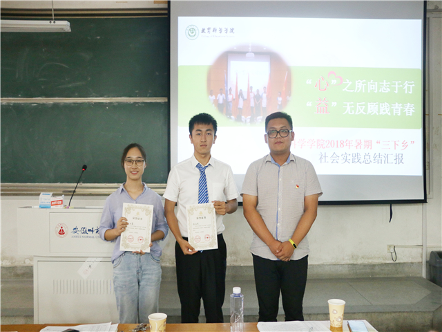 本网讯(教科院 徐翔)青年大学习,奋斗新时代。为检验公司2018年暑期社会实践成果, 9月19日下午在田楼8102教室召开2018年暑期“三下乡”社会实践总结汇报会。出席本次活动的有公司党委副书记张如华、和县青年志愿者协会副会长马宁、心理学专业负责人王道阳、教育技术学专业教师陶佳、院团委副书记莫大贡、2017级辅导员谭茹轩。