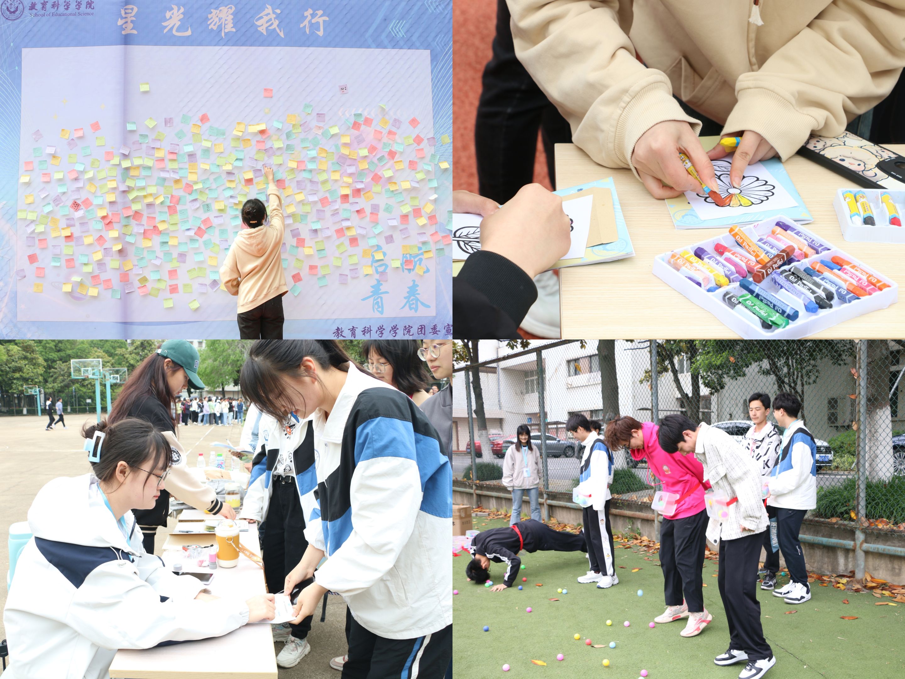 “生涯体验活动”将职业生涯规划各元素设计成六大主题区域、十个体验式游戏活动,每个班级依次进行“星光耀我行”“强化自我”“成就自我”“探索自我”“展现自我”“寻找自我”六项游戏活动,游戏指引同学们积极探索自我世界与外部世界、唤醒同学们的就业意识、激发同学们的成就动机,引导同学在游戏中获得启发,学会目标管理,为以后职业生涯奠定坚实基础。