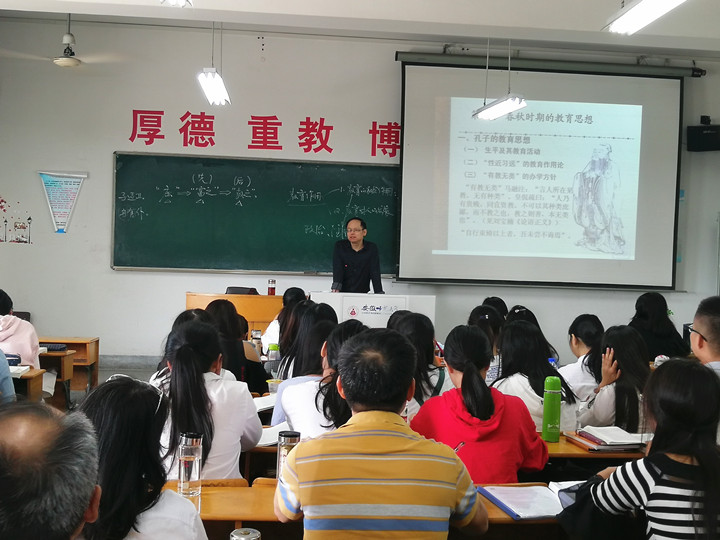 本次公开课的教学内容为《中国教育史》课程中“春秋时期的教育思想”部分的内容,重点是孔子的教育思想。孙老师首先介绍了孔子的生平和教育活动,让员工对孔子有了基本的了解。而后重点讲述了孔子的教育作用论,分别从教育的社会作用和对人的发展两方面来讲述。在讲述教育的社会作用时,孙老师介绍了孔子“以德治民”的思想,引导员工一同品味“道之以政,齐之以刑,民免而无耻;道之以德,齐之以礼,有耻且格。”通过与员工的共同探讨,让员工深刻地理解教育对社会政治、经济的重要作用。在讲述教育对人的发展时,孙老师先启发、鼓励员工表达对“性相近,习相远”这句话的看法,之后结合诸多现实案例对这句话进行更深层次的剖析,条理清晰,严谨规范,加深了员工对相关知识内容的理解,起到了良好的引领示范作用。