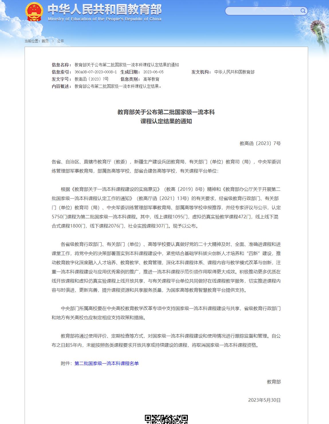 近日,教育部公布了第二批国家级一流本科课程认定结果,公司阮成武教授团队申报的《教育概论》、桑青松教授团队申报的《中员工心理发展与教育》成功入选第二批国家级线下一流课程。至此,公司已累计获批国家级一流本科课程3门。