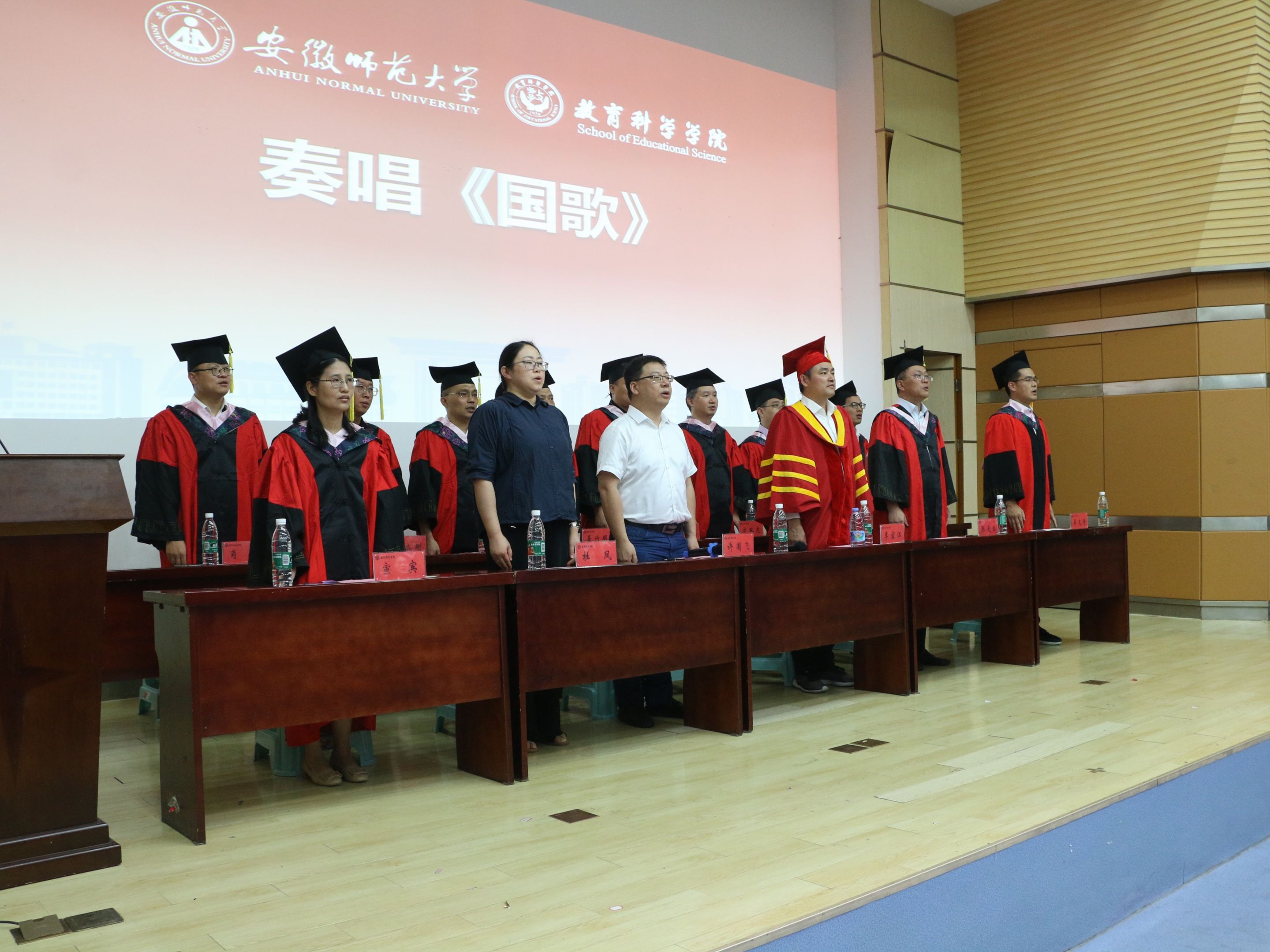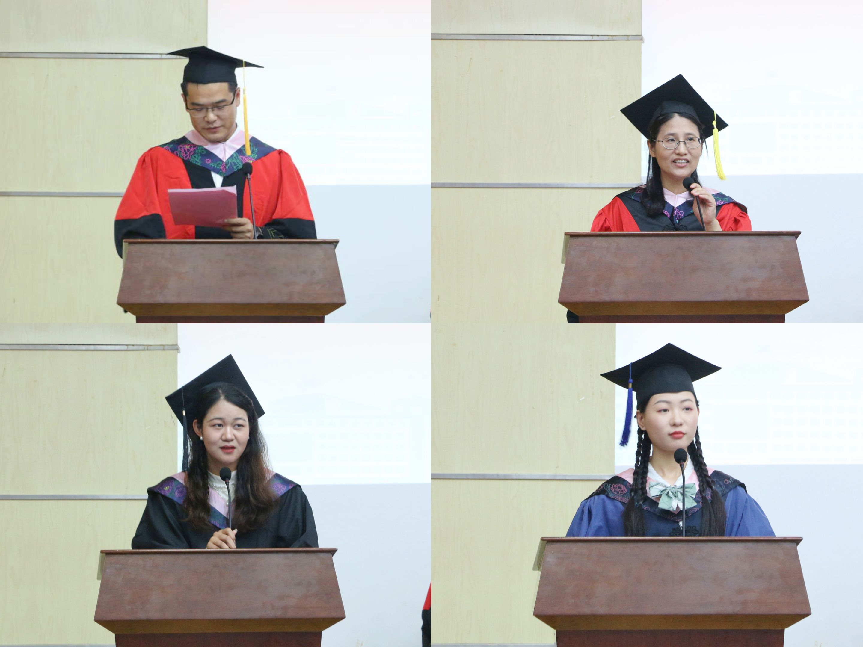 毕业典礼在庄严的国歌中拉开序幕。吴文涛宣读了本科生、研究生授予学位的决定,决定授予顾宇涵等8人教育学博士学位,授予梁冬等65人教育学硕士学位,授予王妮澳等129人教育硕士学位,授予黄少星等234人教育学学士学位,授予林松福等90人理学学士学位。院学术分委员会主任宣宾教授作为教师代表勉励各位毕业生同学们“胸怀大目标,做好小事情”;“拥有大情怀,感念小美好”,做一个人生丰富、灵魂有趣、志存高远又脚踏实地的教科人,同时祝福各位同学毕业快乐,前程似锦。本科毕业生代表、小学教育专业陈静同学,研究生毕业生代表、现代教育技术专业硕士研究生孙方舒同学先后发言,他们深情回忆了在师大生活学习、奋斗成长的点点滴滴,真情表白对母校一草一木的依依不舍,感恩老师的谆谆教诲,怀念同学朝夕相处的情深义重,并衷心祝愿母校事业蒸蒸日上,越来越好。