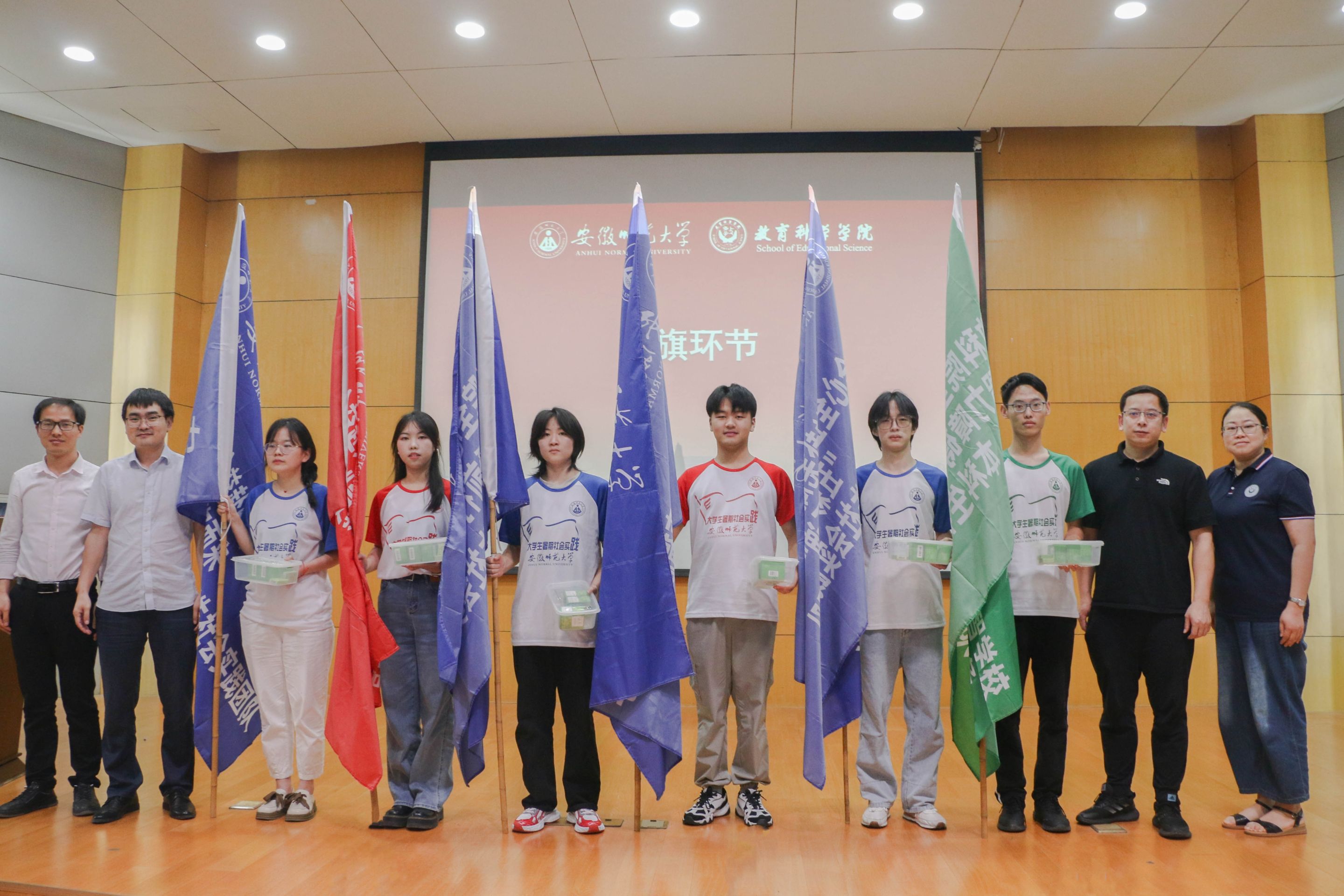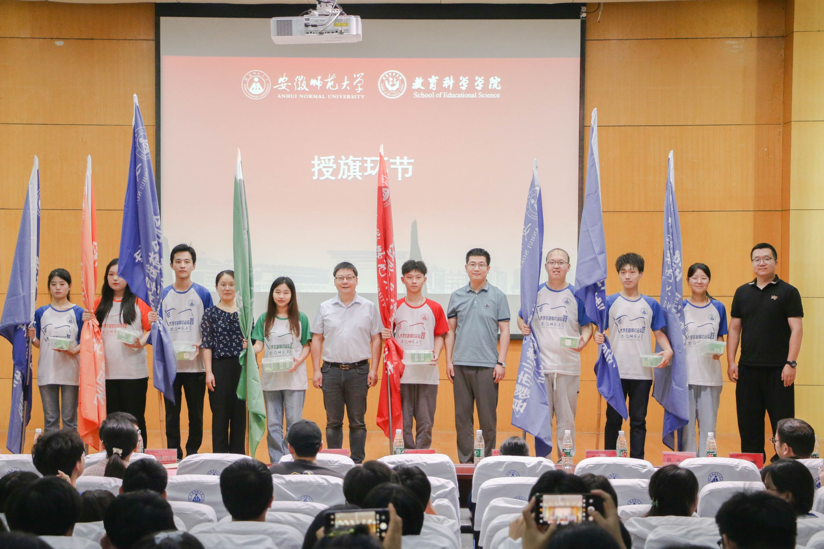 陈骁、许国飞为指导教师代表颁发聘书。与会领导和团队指导教师代表为各团队授旗并发放风油精、花露水、仁丹等实践礼包。