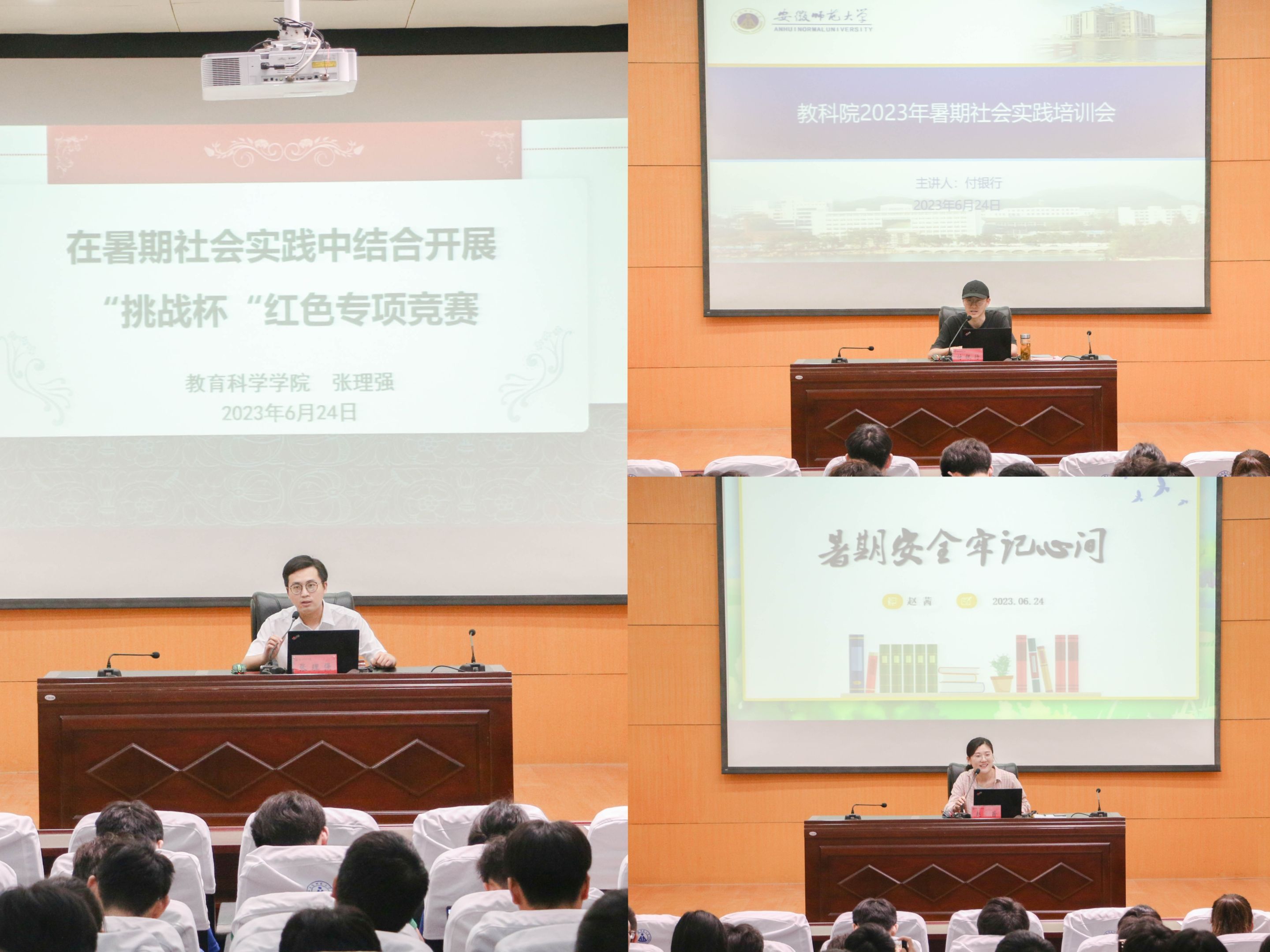 6月24日下午,TapTap点点于赭山校区田楼报告厅举行2023年老员工暑期“三下乡”社会实践活动出征式。校团委副书记陈骁,公司党委书记许国飞,公司党委副书记杜凤,副经理韩建涛,学院阮成武教授,暑期社会实践思政指导教师龚伟、丁建文,团队指导教师代表,公司全体专兼职辅导员及社会实践团队员工代表参加仪式。仪式由学院团委书记张理强主持。