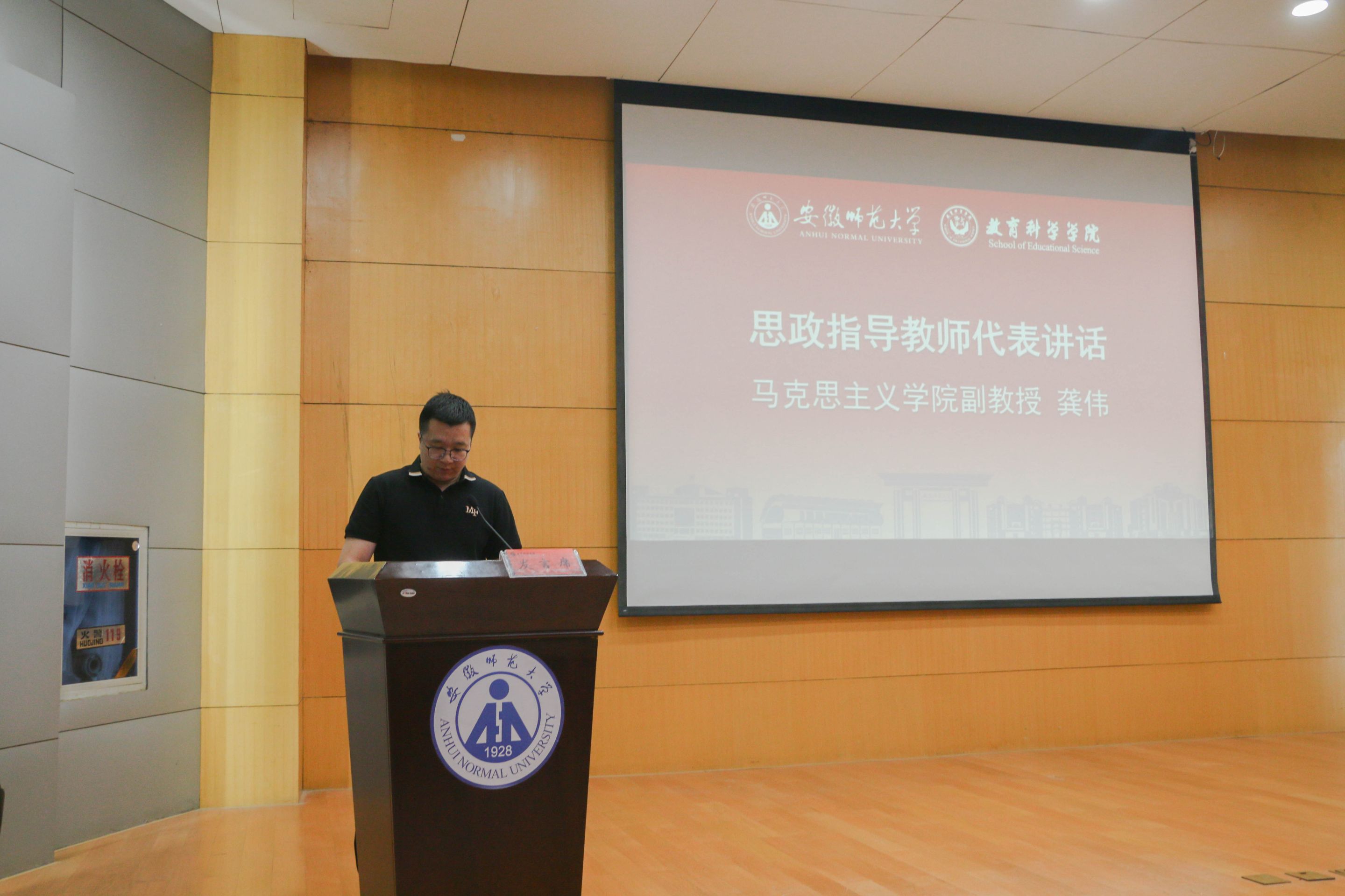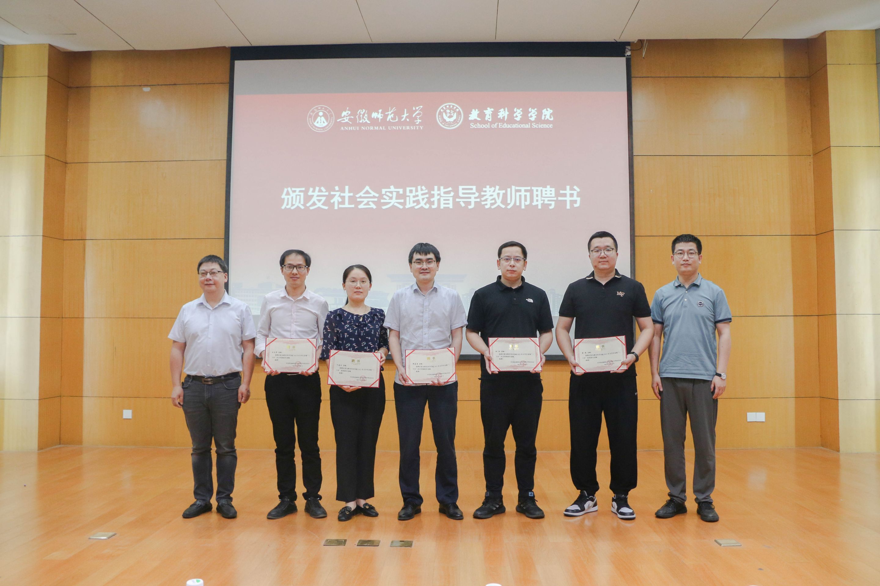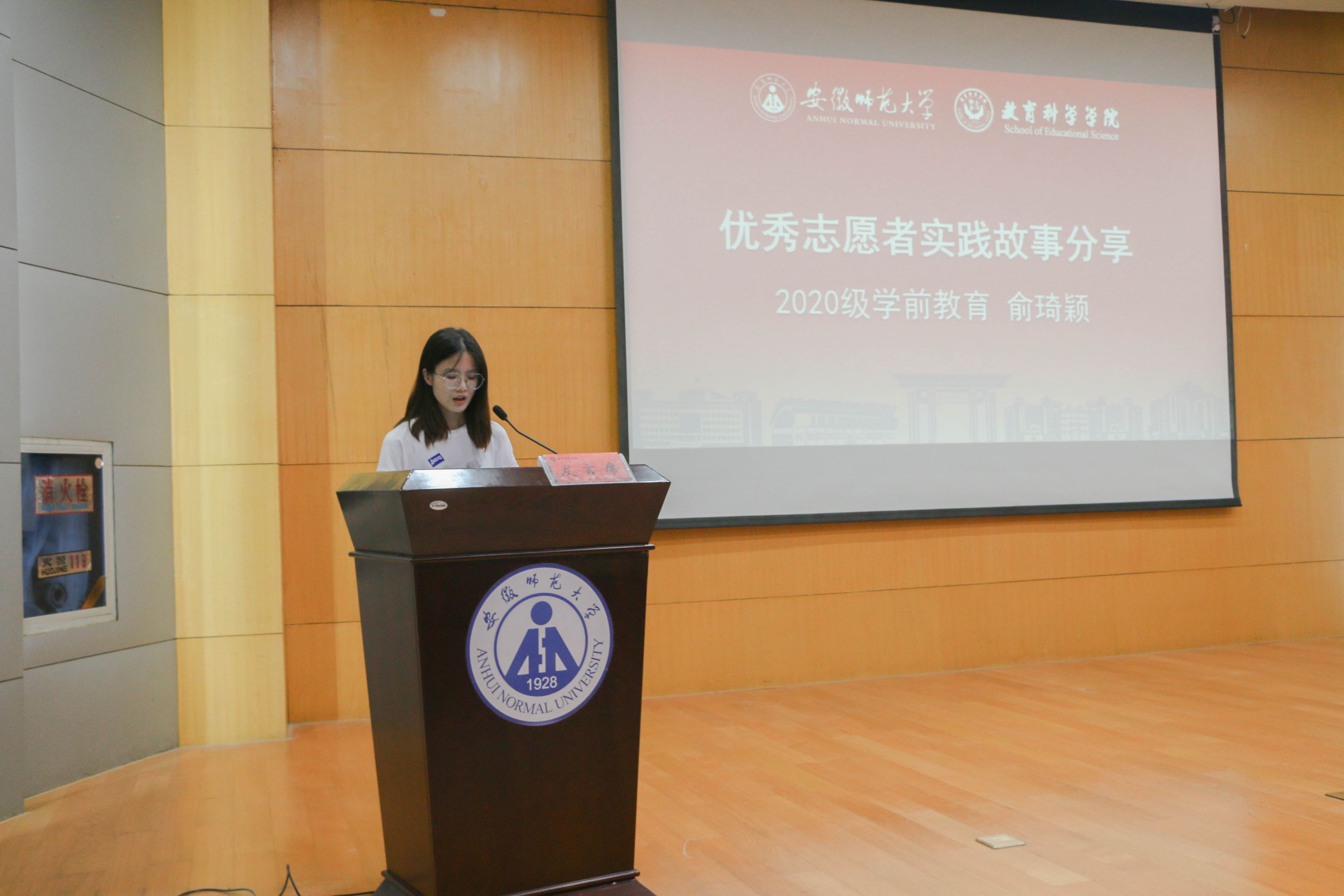 2020级学前教育专业本科生俞琦颖作为暑期社会实践优秀志愿者分享了她在和县的实践故事,并表示只有贴近实际、了解实际,才能发挥老员工人才优势,服务于社会建设。2021级教育学专业本科生孙宇作为校级重点团队代表做出承诺,将珍惜实践机会,以青春投身社会,用实践增长才干。