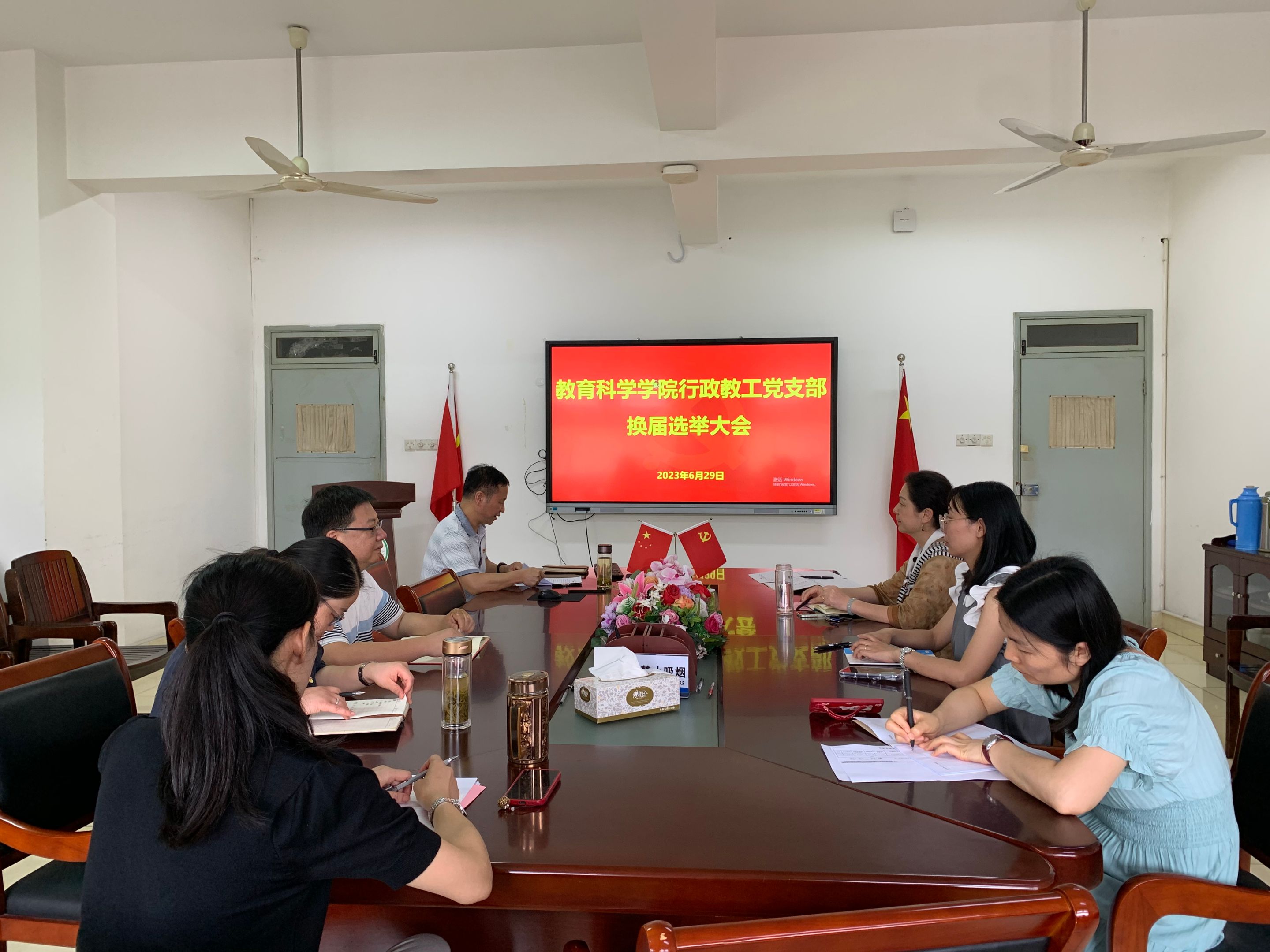6月29日下午,行政教工党支部在308室召开党员大会进行换届选举,支部全体党员参加。会议由支部书记卞纲要主持。