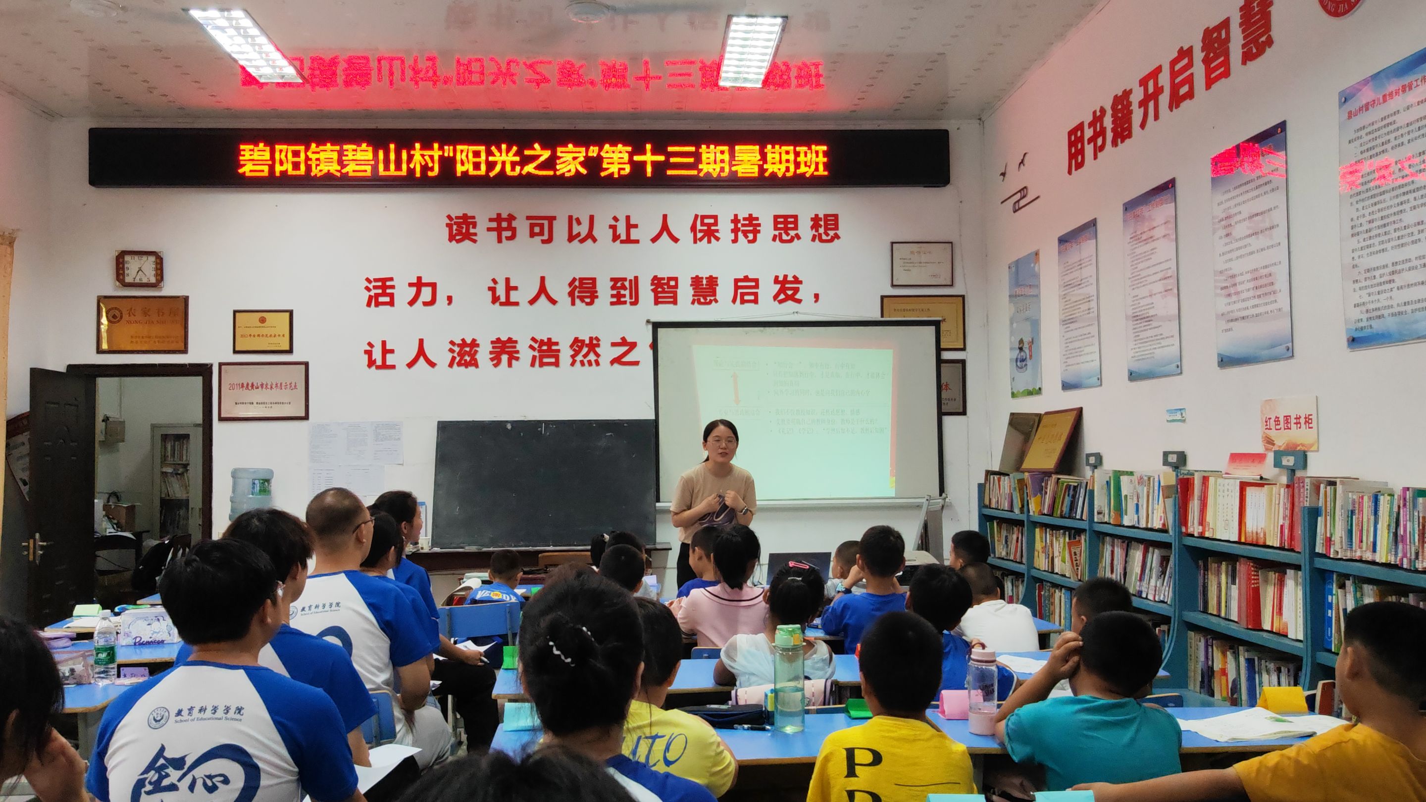 18日下午,杜凤一行分别来到黟县南屏村和碧山村阳光之家深入课堂观摩授课,并开展座谈交流,详细了解实践队员的工作和生活情况。碧阳镇关工委常务副主任胡建新,碧山村妇联主席查永红,“阳光之家”发起人之一欧阳金洪陪同慰问。在南屏村座谈中,队长杨爱娇提到,“今年的支教课堂极富挑战性,主要原因在于员工的年级跨度很大。针对这个问题,支教队员积极开设丰富多样的教学课程,不拘泥于传统教学方式,利用自身专业优势和多媒体资源创新、丰富教学形式,真正让课堂‘活起来’,确保每个员工都能学有所获。”杜凤表示,暑期社会实践是把专业知识与具体实践紧密结合的“行走的课堂”,勉励大家发扬吃苦耐劳和团队合作精神,不断在实践中磨炼意志、增长才干。