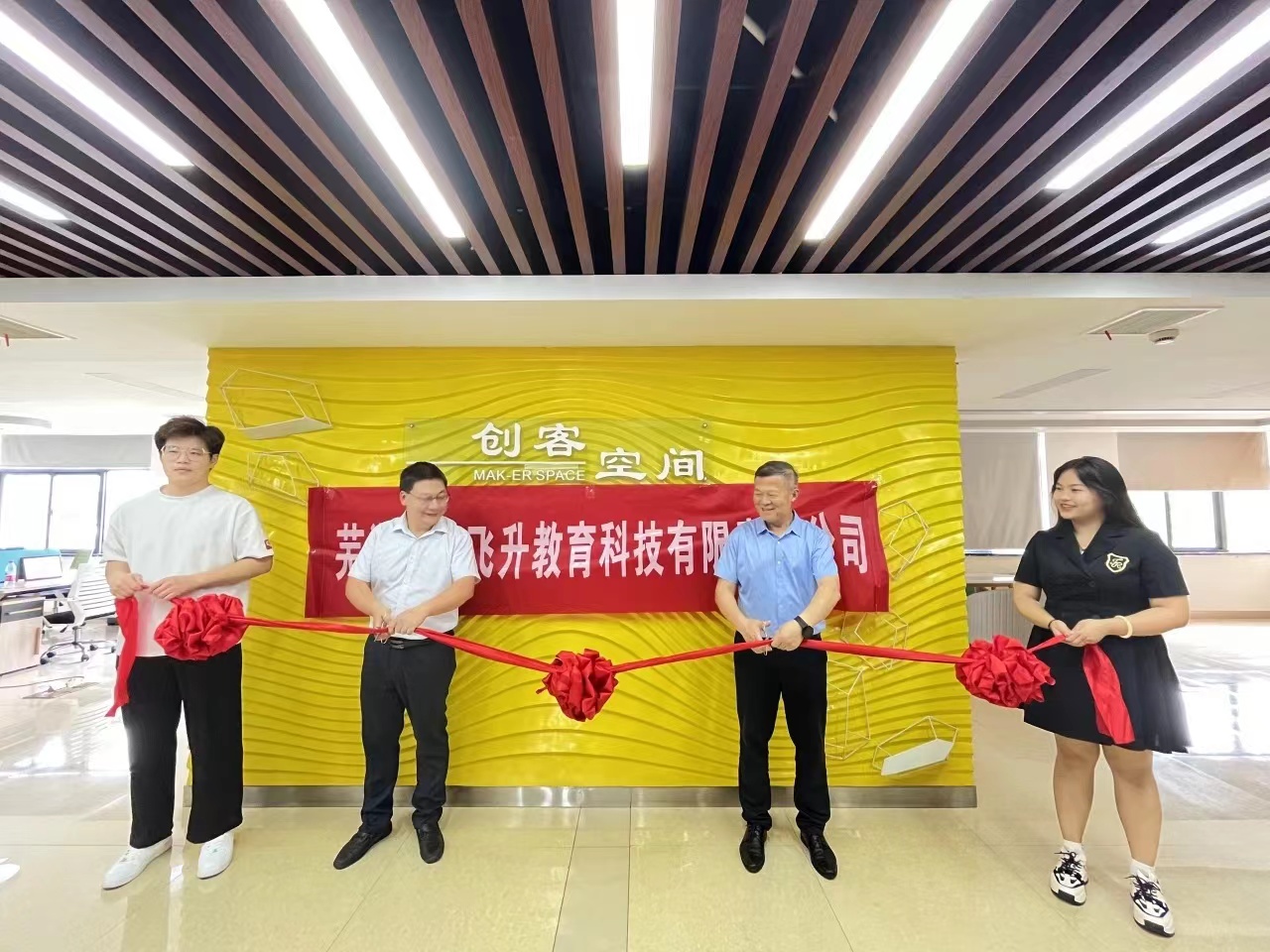 双方领导为20级教育技术学专业国家级创业项目企业落地进行剪彩,其项目是省级质量工程“基于产出导向的高质量教师教育人才培养体系研究”的重要推进。
