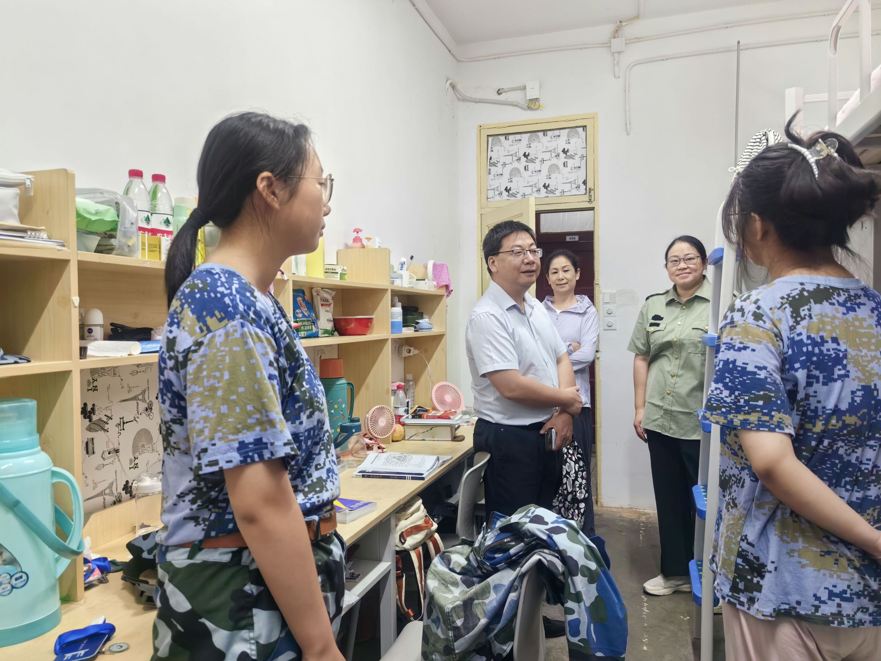 院领导班子及辅导员深入员工宿舍,了解新生生活情况,询问军训适应状态,亲切与员工沟通交流。学院领导还就宿舍安全、校园安全、人身安全提出注意事项,督促员工保持军训内务教学成果,营造良好寝室氛围,共同打造寝室文化特色。