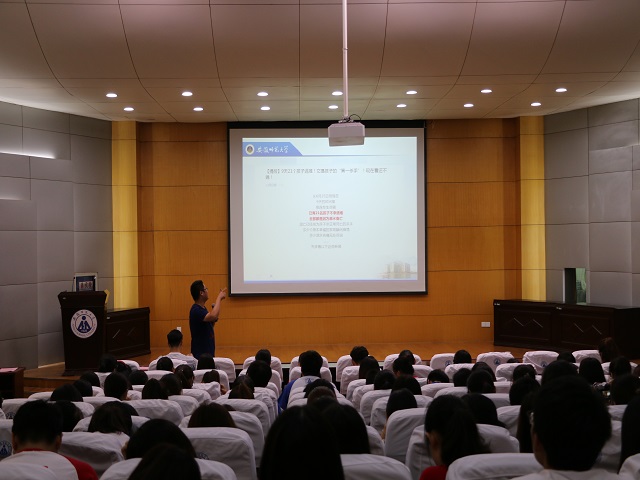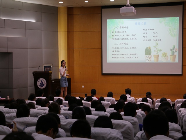 授旗仪式结束后,院团委副书记莫大贡老师进行暑期社会实践专题培训。他从当天人民日报关于暑期溺水事件的报道出发,强调暑期社会实践安全的“十个注意”、“四个严禁”和“三个务必”。随后他介绍了暑期社会实践的评比表彰的内容,并对优秀报告、优秀征文、优秀札记、优秀图片、优秀微视频的评选标准进行了详细的阐释。最后,莫大贡老师对新闻稿的写作做了专题培训。