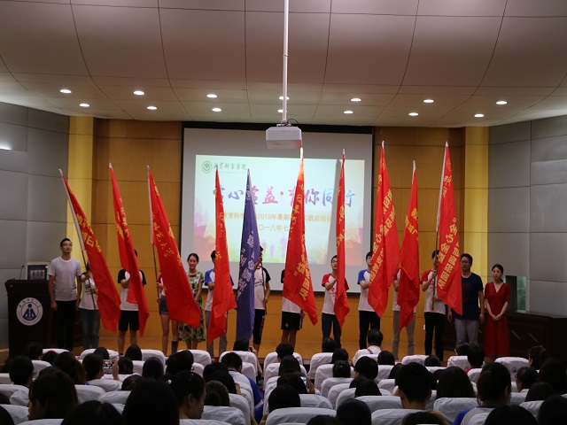 公司的领导老师非常关心即将奔赴全国各地的同学们。重点团队指导老师全莉娟对“全心全益”做了新的阐释,希望同学们用爱心做好实践,在实践中收获成长。暑期社会实践思政课指导老师戴家芳从暑期社会实践的安全出发,要求全体队员要严格遵守规章制度,在安全中实践。公司党委副书记张如华做动员讲话。她要求所有实践团队将安全放在首位,紧扣实践主题,围绕“全心全益,育你同行”结合各自专业开展系列特色活动,在实践中满足社会服务需求,锻炼自身才干。随后,在欢快的乐曲声中,领导老师分两批为重点团队授旗。