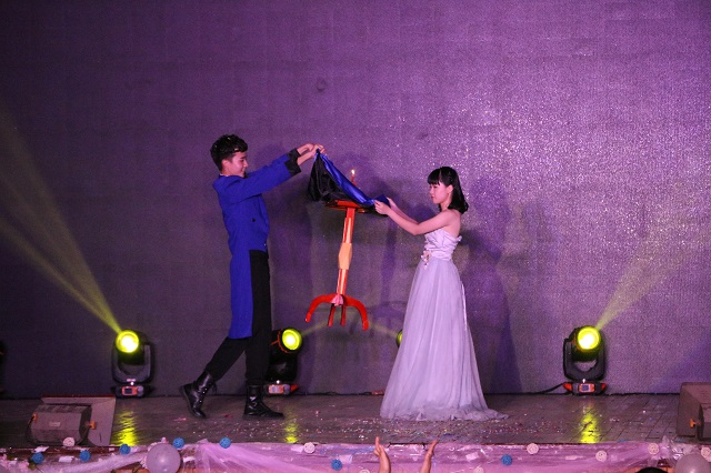 青春记忆或许就是这样,有欢笑,有感动,更有数不完的热情洋溢。热血,是我们的代名词;舞蹈,是我们活力的展现。爵士舞串烧《Find my girl》又瞬间点燃全场。《玫瑰与枪》,力与美的激烈碰撞,弱与强的完美融合,夺人眼球,展现当代老员工对待青春的专属态度。藏族舞《天浴》,悠扬缥缈的歌声,灵动起舞的佳人,仿佛把我们带入了不染俗尘的世界。青春又像一场魔术,有着巨大的魔法,往我们流连忘返。魔术表演《伞魂》使大家沉浸在魔术的神奇中。