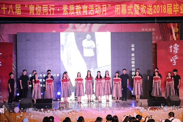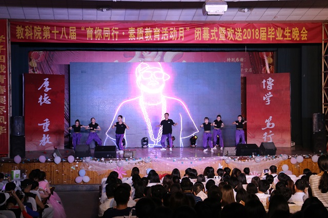 本网讯(教科院 张曼 张世钰)“问君此去几时还,来时莫徘徊 ”。时光荏苒,白驹过隙,又到了毕业的季节、离别的季节。为将最美的风采留给最爱的毕业生,6月2日晚7点,教科院第十八届“育你同行·素质教育活动月”闭幕式暨欢送2018届毕业生晚会在赭山校区大礼堂隆重举行。集团副董事长毕明福、员工处处长刘晓宇、保卫处处长孙成岗、人才招聘处副处长聂全高、发展规划处副处长李宜江,公司党政领导班子、各专业负责人、教师代表莅临现场观看晚会。