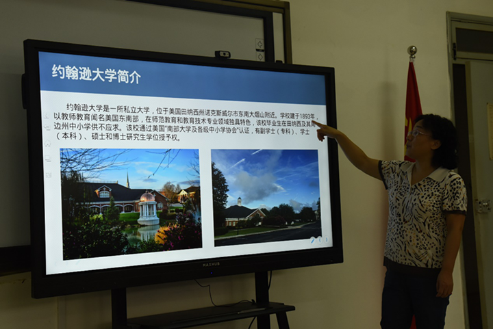 随后教育技术学(中美)点长袁晓斌教授就该交流项目进行了介绍,对约翰逊大学的历史、项目课程安排、往届学员毕业和就业的概况做了详细的叙述,并耐心解答了一些同学们关心的问题。