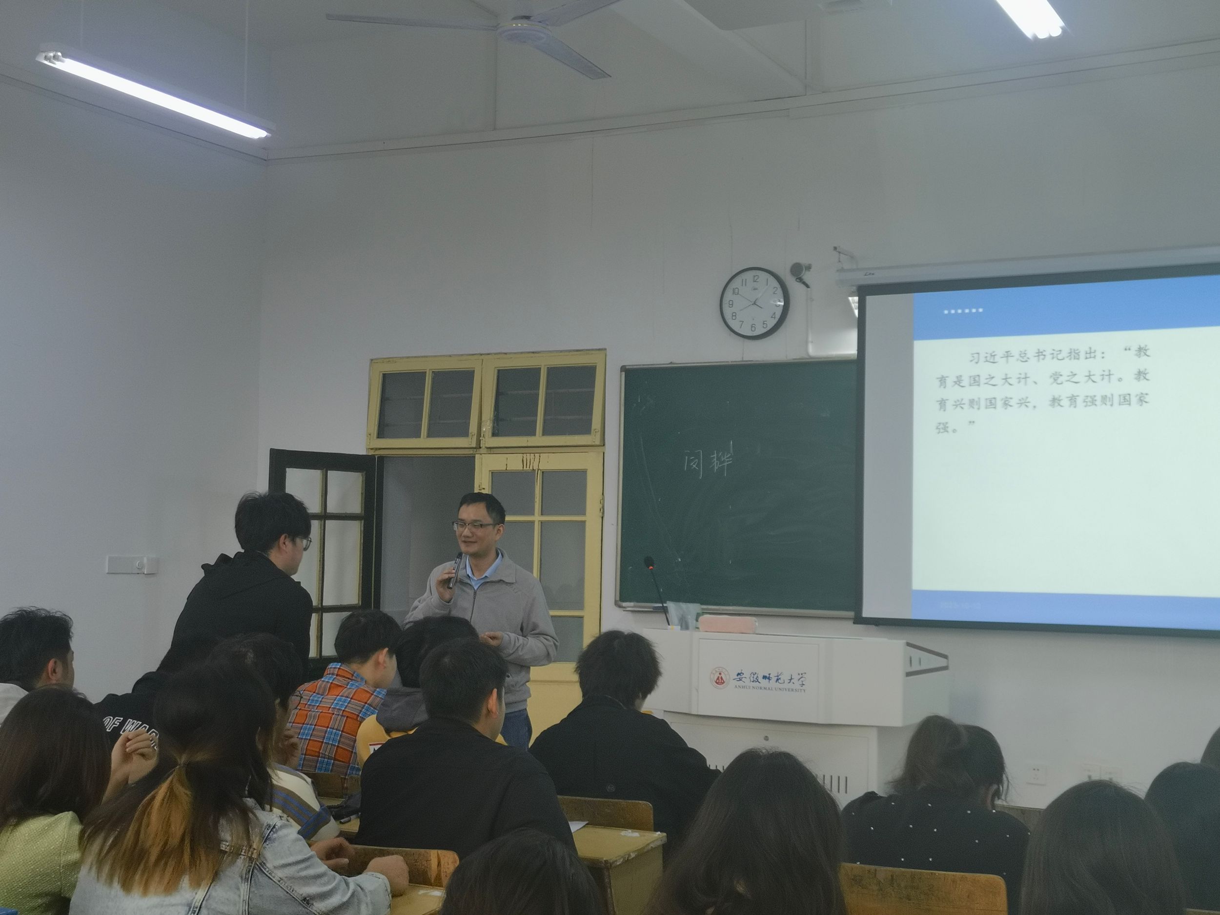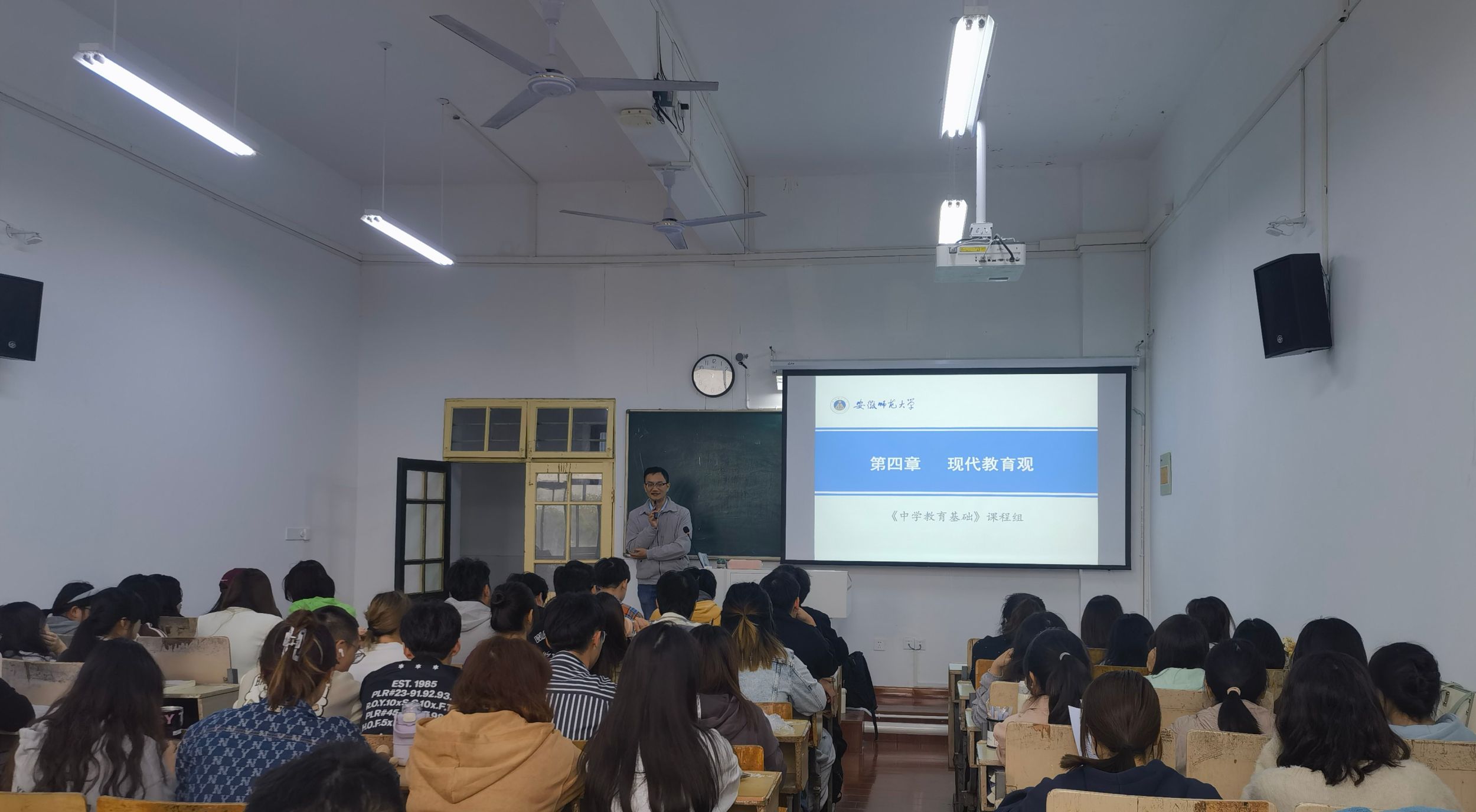 10月10日上午第一节课,闵韡老师在教学楼1306教室开展了《中学教育基础》课程思政示范课。此次授课对象为22级音乐学1班的员工,授课内容为“现代教育观”。校督导团、教科院领导和部分中青年教师共同观摩了本次示范课。