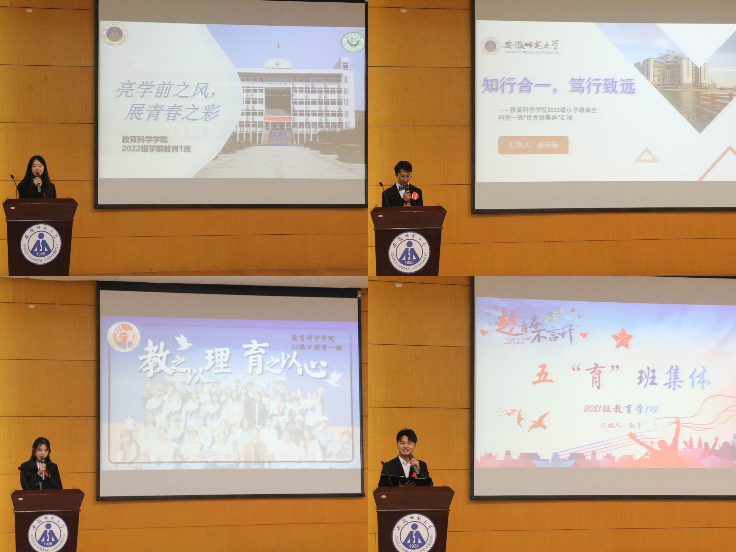 经各位评委老师商议,2021级教育学1班、2021级小教复合1班、2021级教育技术学1班荣获院级优秀班集体称号,优秀班集体提名奖获得班级为2021级心理学1班、2022级学前教育2班、2022级小教全科2班。
