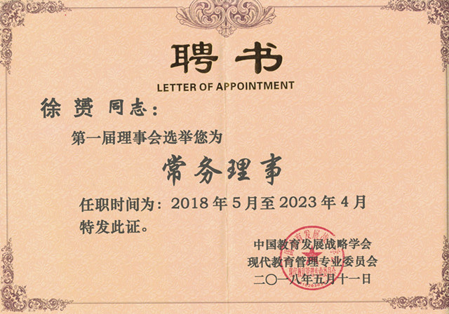 据悉,中国教育发展战略学会现代教育管理专业委员会是中国教育发展战略学会下设的二级学会。为深化我国教育管理体制改革与机制创新,推进教育治理体系与治理能力现代化的需要,于2018年4月经中国教育发展战略学会批准设立的全国性的学术性社团组织。此次公司徐赟老师参会并当选常务理事,进一步扩大了公司的学术影响,既是对本学科教育管理与政策研究方面成绩的肯定,也将为教育学科深化相关领域交流与研究,及时把握国家教育改革动态提供良好的平台。