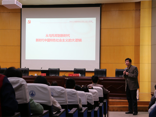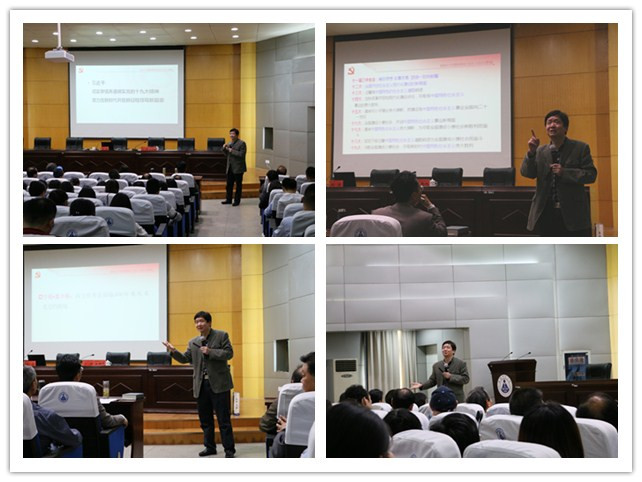 公司党委书记方泓首先发表讲话,他强调了公司关于组织十九大精神学习贯彻的深刻意义,并热烈欢迎胡靖部长前来公司进行辅导。随后,胡靖部长的讲座正式开始。他首先强调习近平总书记提出的 “学懂弄通做实党的十九大精神”的重要意义,指出我们要采取理论与实践、历史与现实、当前与未来相结合的方法,将十九大精神领会准、领会深、领会透。基于此,他引出了讲座的主题——《从乌托邦到新时代——新时代中国特色社会主义的大逻辑》。胡靖部长主要从“三个逻辑”出发,从科学社会主义理论、世界社会主义进程和中国社会主义实践三个角度出发,系统解读新时代中国特色社会主义。胡靖部长以宏大的历史视角,严密且具有逻辑的思维体系,讲述了空想社会主义失败的必然性和马克思科学社会主义理论的先进性和进步性;接着他从世界社会主义进程出发,介绍社会主义从一国到多国的胜利直至苏联社会主义的失败,深刻剖析了社会主义曲折进程的历史原因,进而指出“道路决定命运”,只有明确把握“什么是社会主义?怎样建设社会主义?”这个方向性的问题,才能找到社会主义发展的出路;最后,他从现实逻辑出发,指出新时代中国特色社会主义是夺取社会主义革命胜利的必由之路,是中华民族的复兴路、中国人民的幸福路。