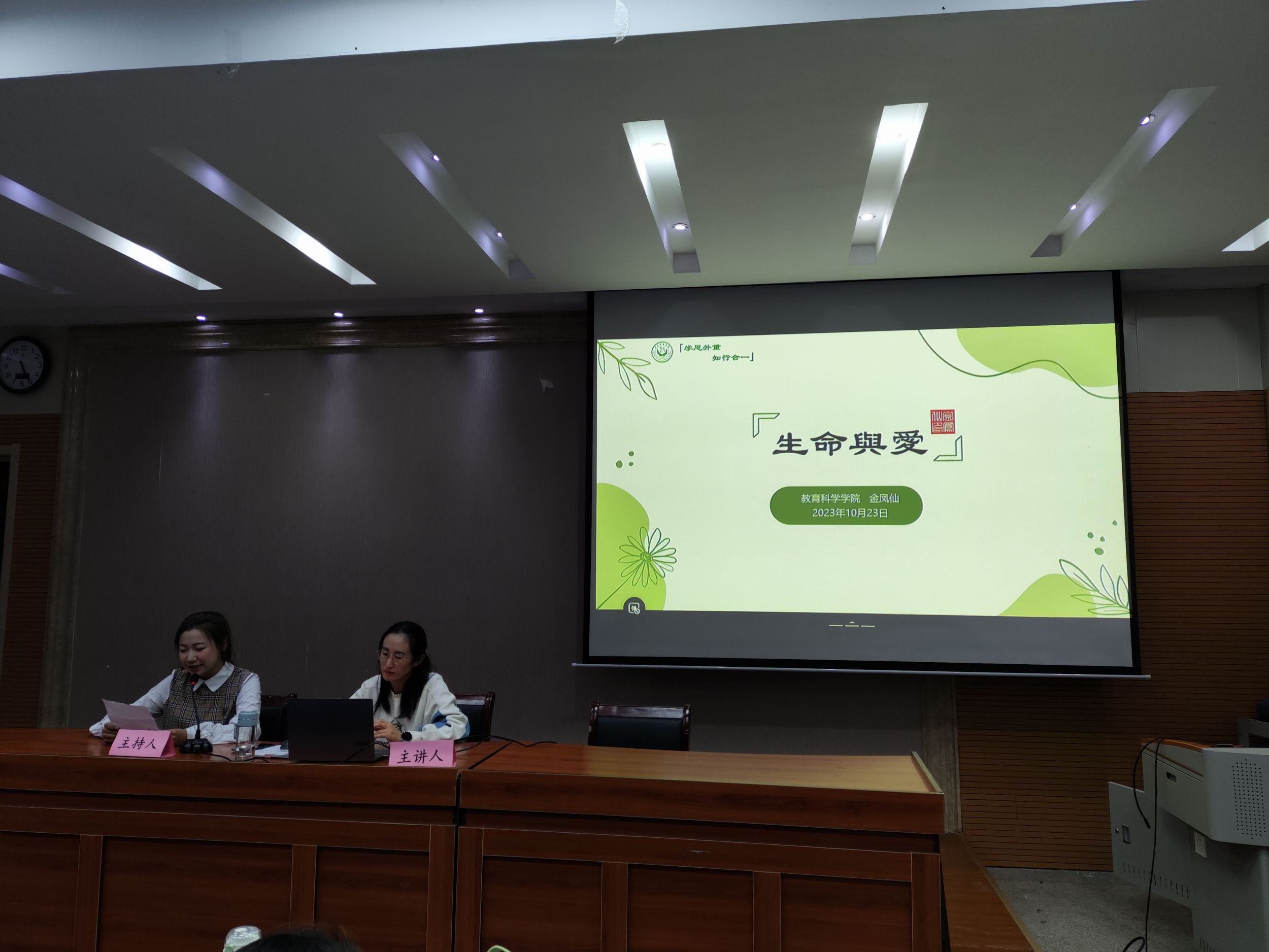 10月23日,公司新生辅导员、中国心理学会注册心理师、国家二级心理咨询师金凤仙于天门山开展生命教育专题讲座,讲座详细讲述了生命的意义、面对生命的正确心态、寻求爱的力量以及心理危机的处理,深化了各位同学对生命的认识,帮助同学们树立“生命至上,健康第一”的理念,养成积极健康的人生观和生命观,增强生命安全意识,关注生命关爱他人。