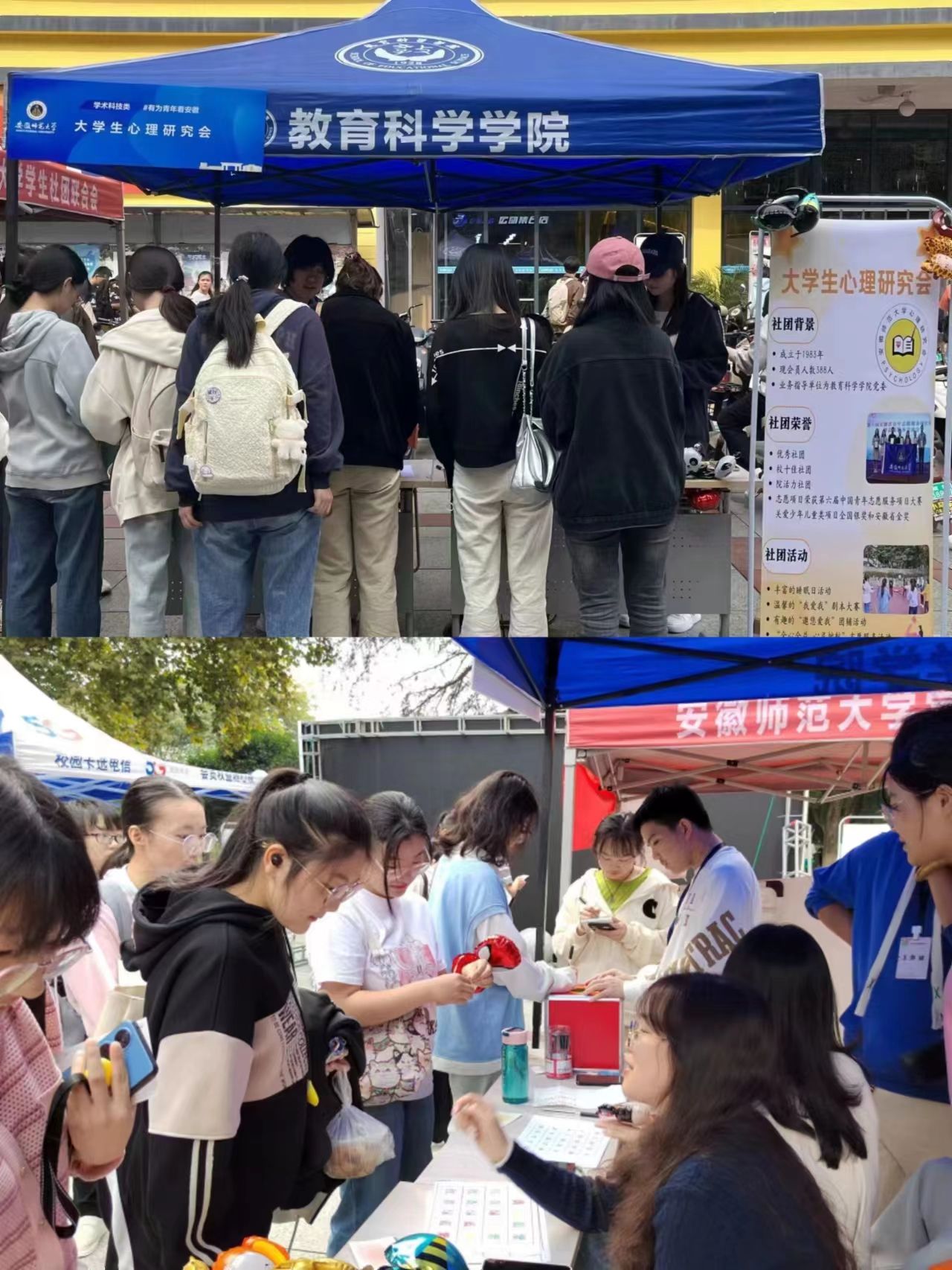 10月25日当天,老员工心理研究会于赭山校区食堂广场前开展10·25专场系列活动。时光信箱——与未来的自己对话,未来是值得每个人期许的,参与者可在便签纸上写下对一年后的自己想说的话,写上名字,并折成自己喜欢的形状放入信箱,期待明年的10.25活动各位同学再次打开。为了测试专注力并帮助提升专注力,开展Stroop挑战和舒尔特方格挑战,各位同学在活动中挑战自我,学习知识。