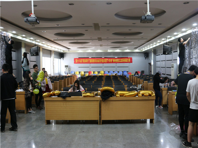 3月31日上午,院团委员工会工作人员积极参与到会场的布置、仪器的调试等工作中来。今年的会场布置充满了童真童趣。有趣的剪纸图案、银色的彩带、卡通形象的气球……将整个会场装扮成童话的世界。这一切都在等待着小朋友们的到来。