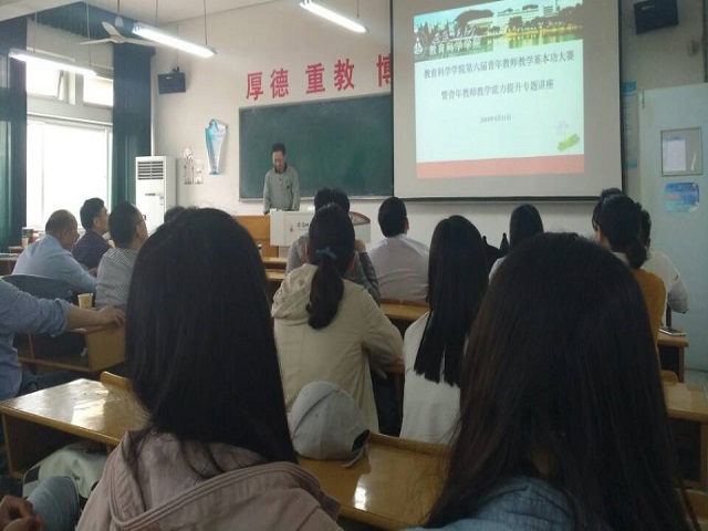本网讯(教科院 余露)4月11日下午,公司在赭山校区8401教室举行了院第六届青年教师教学基本功大赛暨青年教师教学能力提升专题讲座。公司党委书记方泓,评委老师黄时中、杨周生、龙文祥、丁荣生、孙德玉、庄华峰、伍旭中、王守恒、周兴国、吴玲出席比赛现场。大赛由经理助理周元宽主持,陶佳等十二名青年教师参加了本次比赛。其中,文科组参赛教师与评委在8401教室,理科组参赛教师与评委在8402教室进行大赛。公司部分教师与相关专业员工代表旁听了本次大赛。