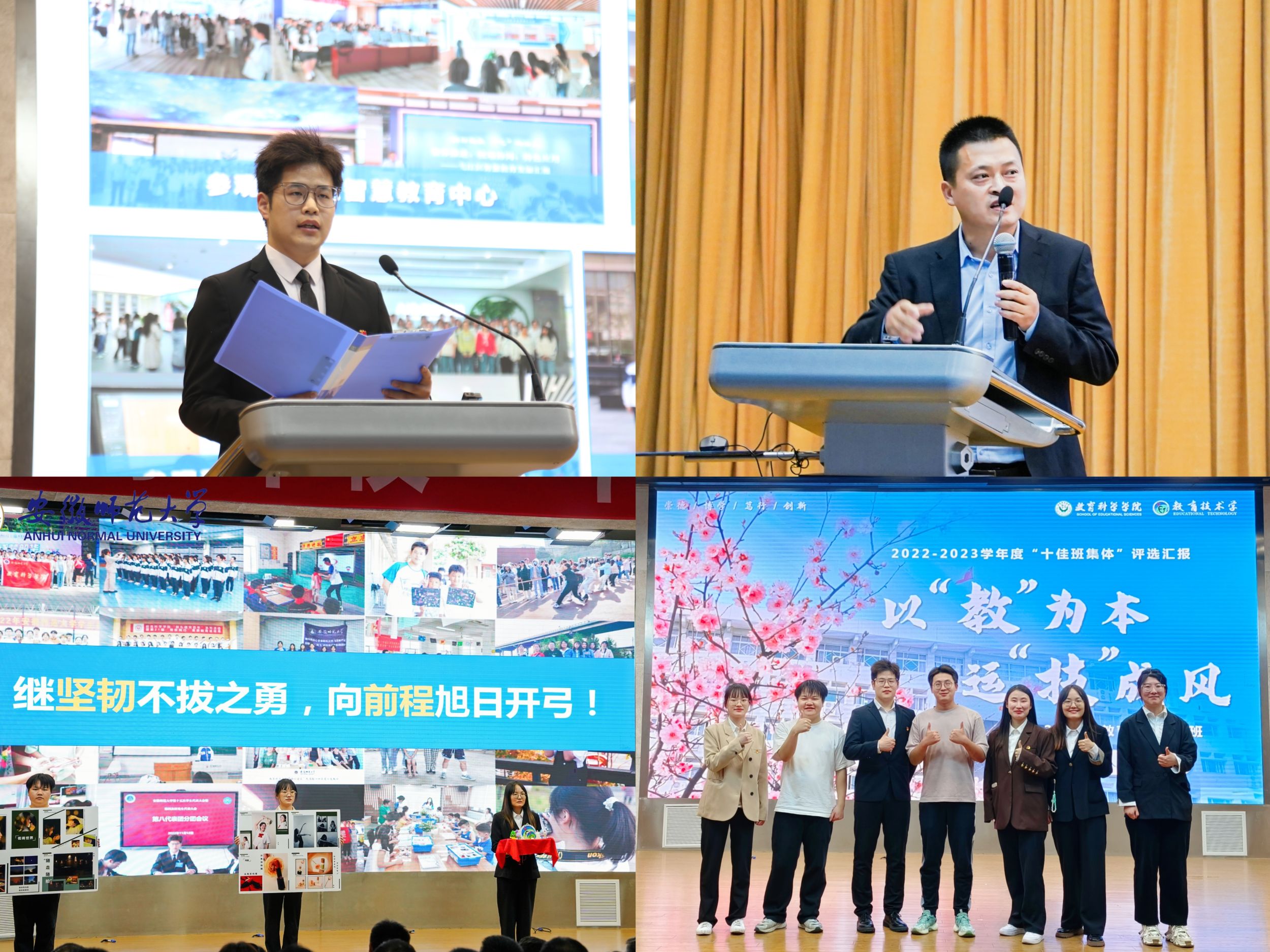 11月8日下午,安徽师范大学2022-2023学年“十佳班集体”风采展评会在花津校区举行。教育科学公司2020级教育技术学1班在本次“十佳班集体”评选中以精彩的表现脱颖而出,荣获“十佳班集体”荣誉称号,充分彰显了教科学子奋发有为、勇于突破的精神风貌。该班也是继2019年2017级教育技术学1班之后,公司再次获评校“十佳班集体”的班级。