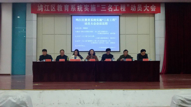 本网讯 教科院 吴支奎 为进一步推进公司与鸠江区政府实施“名校名师名董事长工程”的战略合作进程,3月17日上午,公司桑青松经理应邀出席了鸠江区教育系统实施“三名工程”动员大会。鸠江区政府褚亚红副区长、鸠江区教育局班子成员及各科室负责人、全区各中小学及公办幼儿园校(园)长、书记,副校(园)长、副书记,教导主任、政教主任及大队辅导员,各学科教研员、区学科大组组长、区学科带头人,市级及以上骨干教师等400余人参加了此次动员大会。会议由鸠江区教育党工委书记、局长胡晓莲主持。