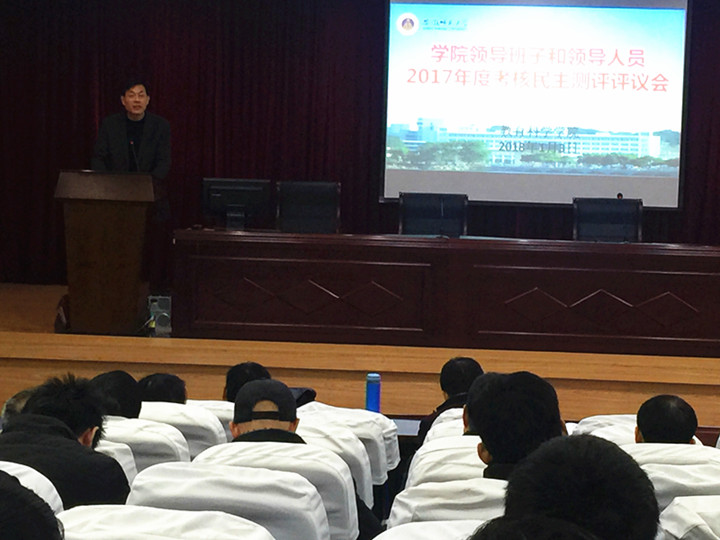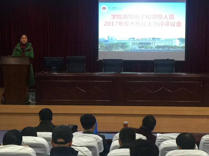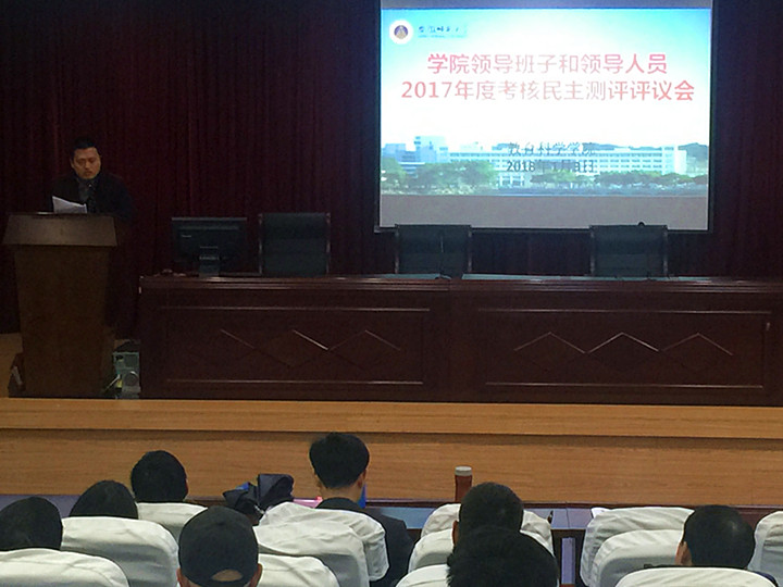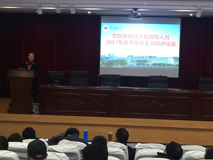 会上,首先经理桑青松代表公司领导班子向全院教职工就2017年公司工作进行了总结,他指出2017年公司坚持党建事业齐发展,党建引领作用持续增强,形成了“公司——专业——课程”的三级教学管理模式,创新了育人载体,员工在素质拓展、学科竞赛、发明专利、科学发明方面成绩显著,构建了以科研促人才培养体制,学科及科研建设实力日益彰显,科研成果大幅度增长,营造了良好的育人与学术氛围,有效的助力了公司的社会服务,公司发展态势良好。随后,公司其他副职领导干部结合自己分管的工作从德、能、勤、绩、廉等方面向全院教职工报告了自我履职情况。述职结束后,全院教职工对领导班子及成员进行了民主测评。