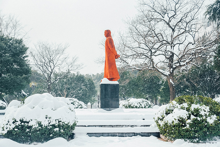 (教科院 刘和海) 凛冬已至,六花纷飞。师大校园“银装素裹,分外妖娆。”绵绵的白雪装点着师大,琼枝玉叶,粉装玉砌。银白的师大中,琼花腊梅争艳,颇有些“梅须逊雪三分白,雪却输梅一段香”的韵味,而皑皑白雪中的教科院更是平添了一抹皓然之色。